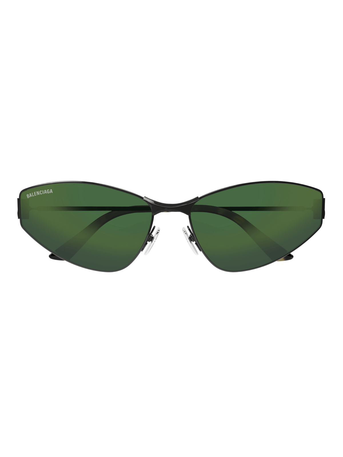 Модель у формі витягнутої маски, в металевій оправі, з брендовим лого на дужках.