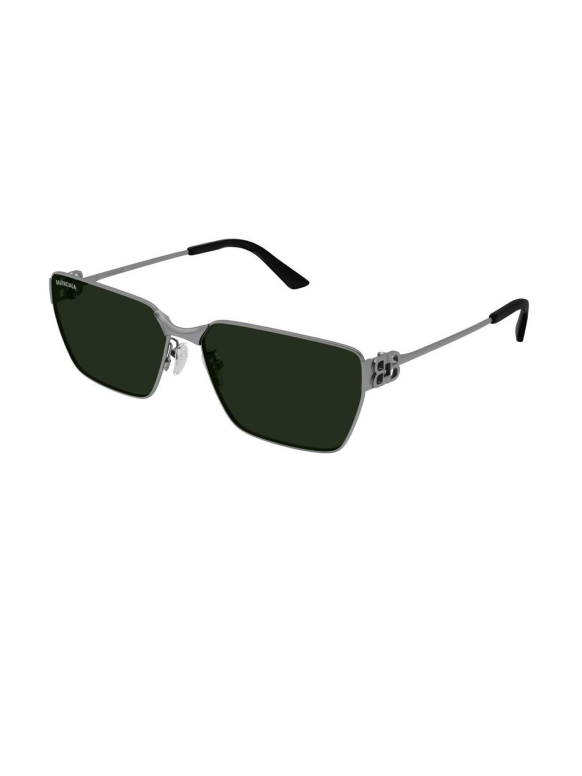 BALENCIAGA BB0374 002 - модель з обэмним прямокутним силуетом , в металевій оправі, з брендовим логотипом бренду на дужках, лінзи темно-зеленого кольору.