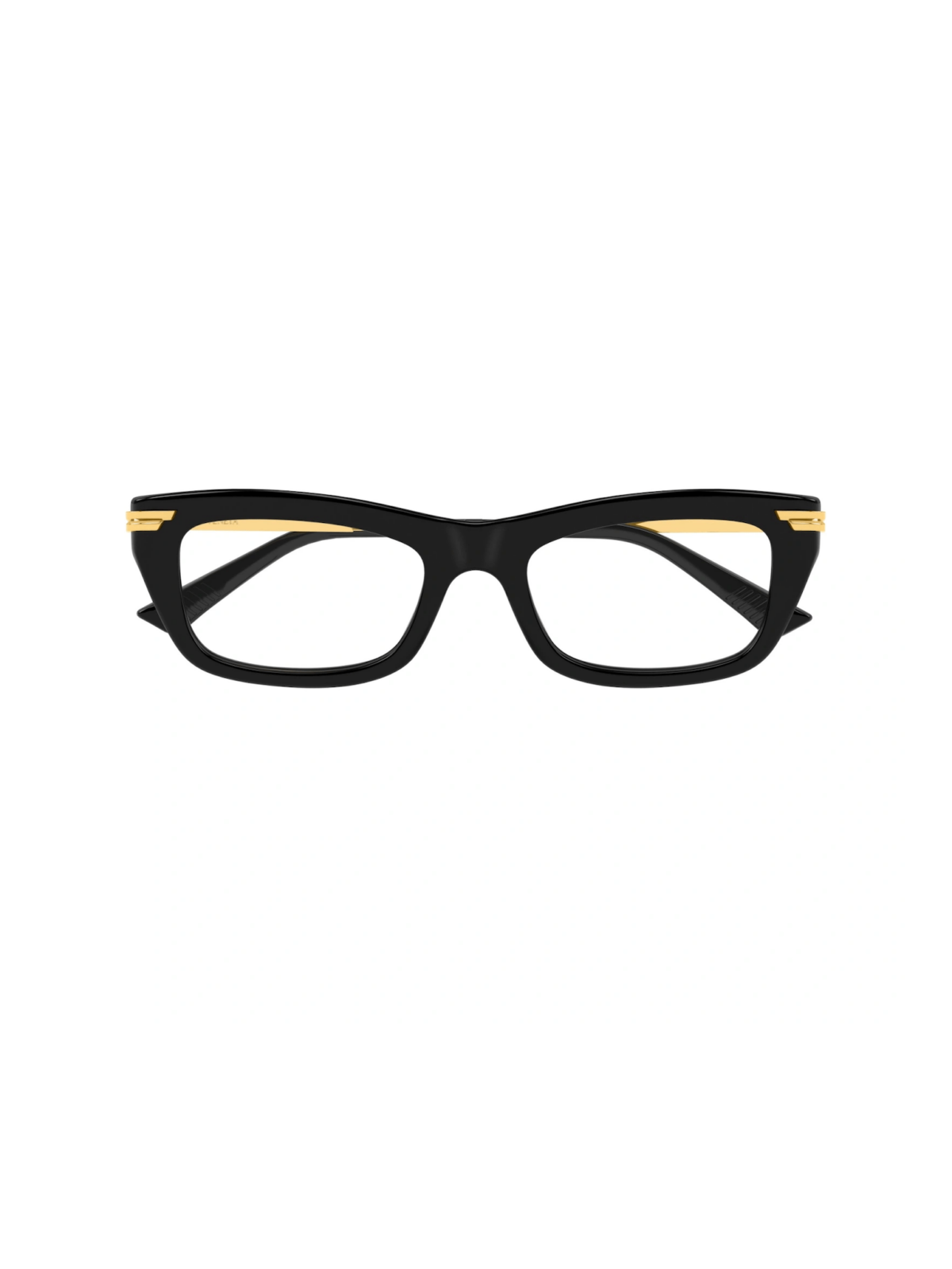 Модель имеет силуэт cat-eye с четкими, мягко приподнятыми верхними углами. Оправа выполнена из черного ацетата.