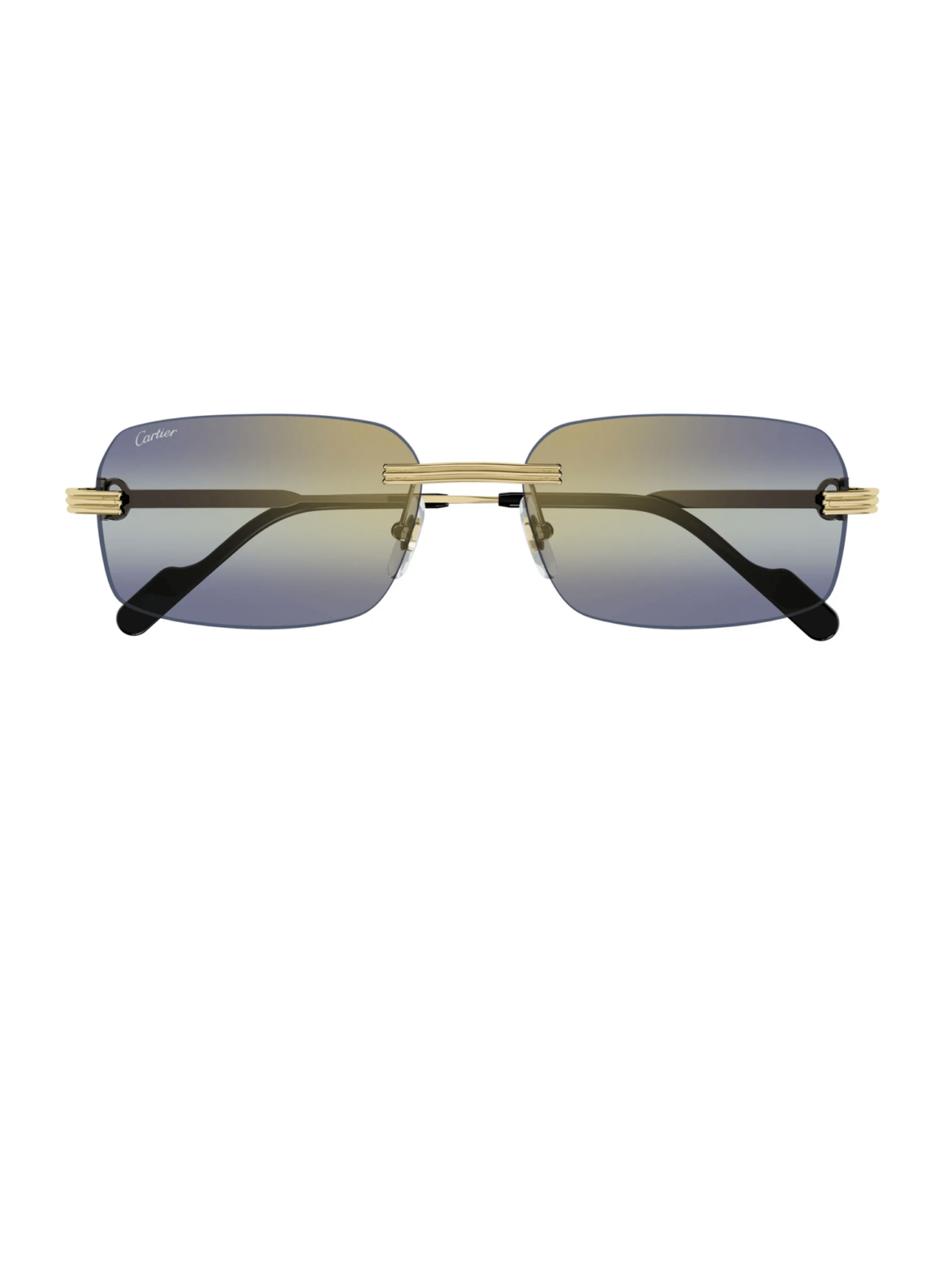 Культова безоправна модель від Cartier в прямокутному слуеті , покритя оправи жовте золото 5мм, з зеленою градієнтною лінзою.
