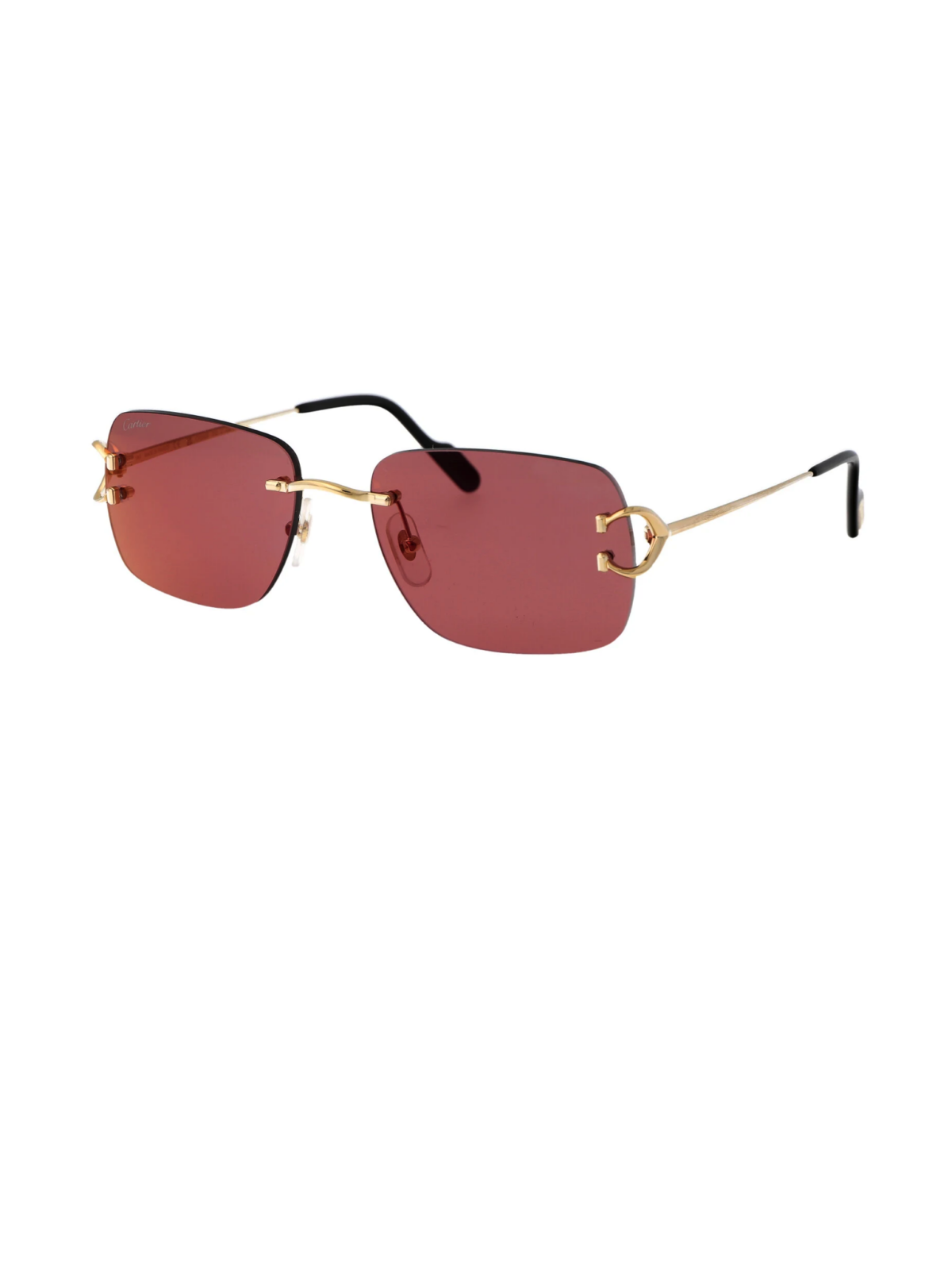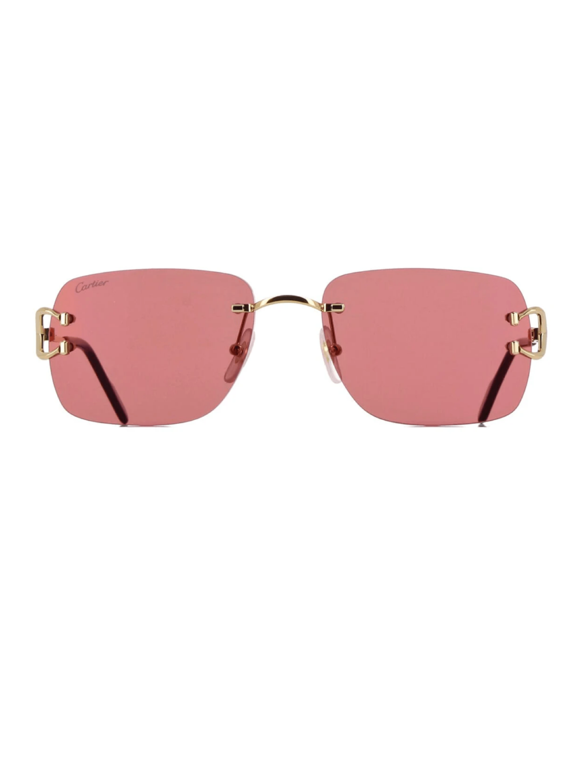 Безоправна модель від Cartier в прямокутному слуеті , покритя оправи жовте золото 5мм, з червоною лінзою.