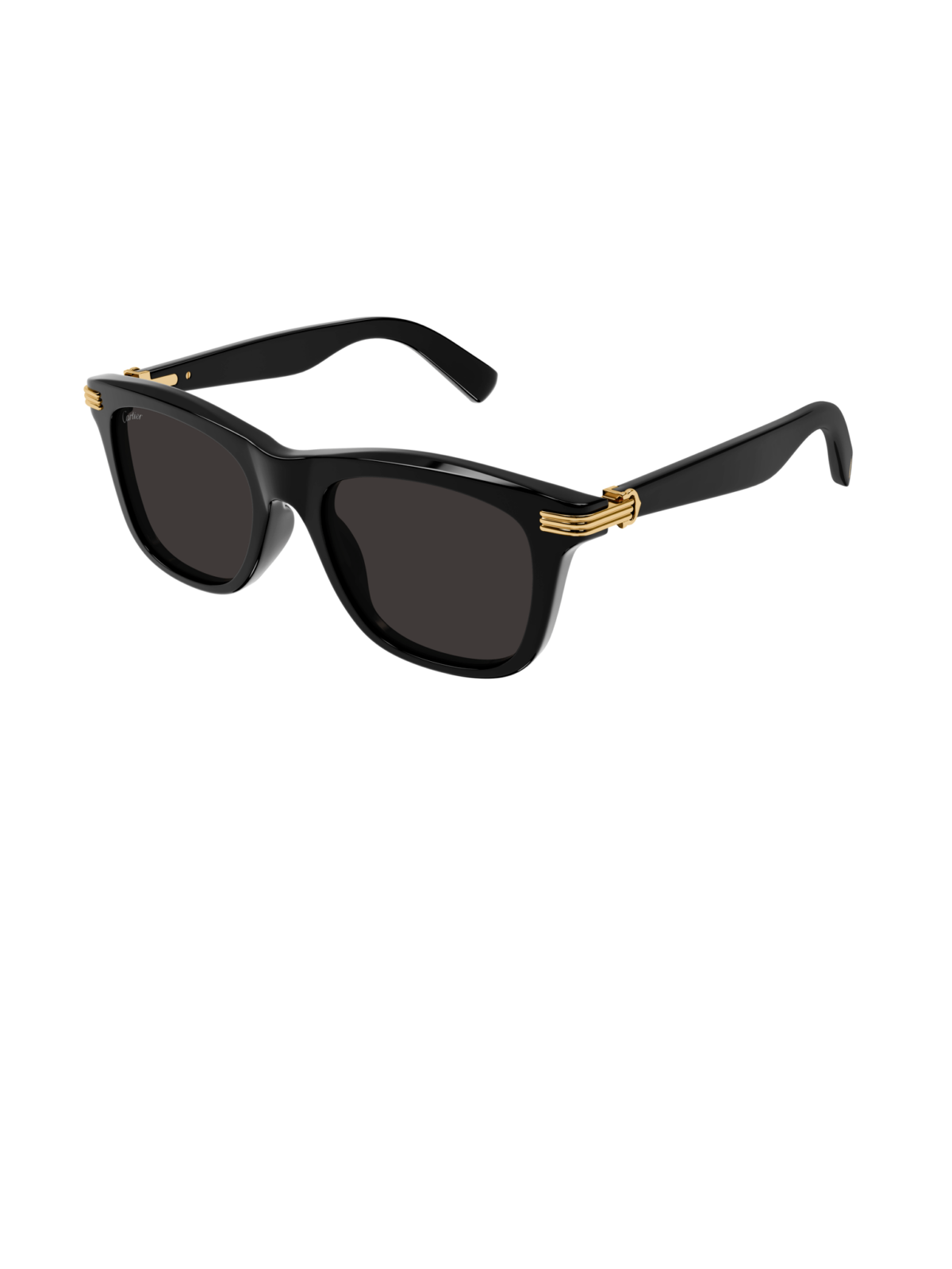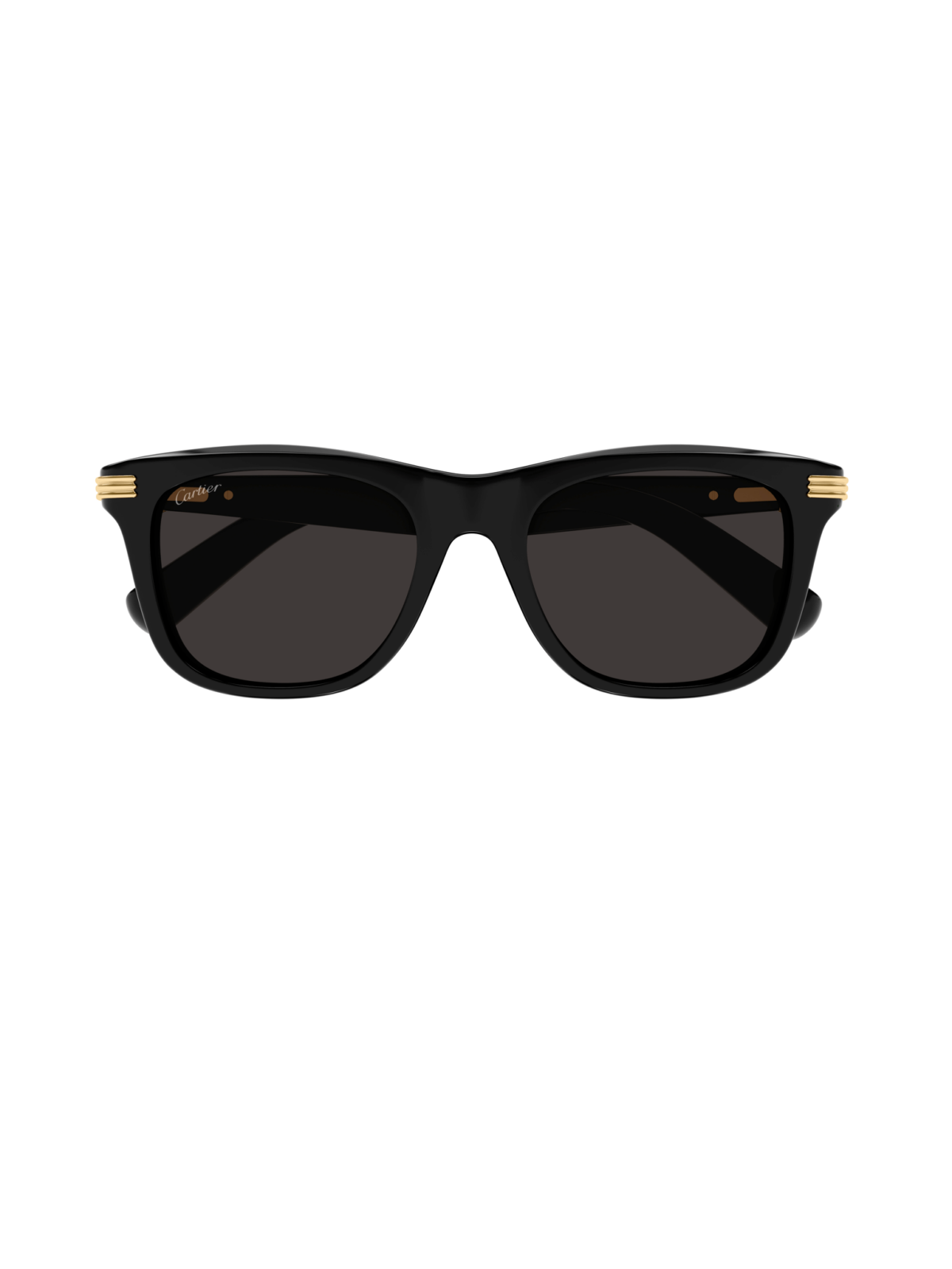 Модель класичної форрми, в чорній оправі із золотими елементами на дужках, з сірою лінзою.