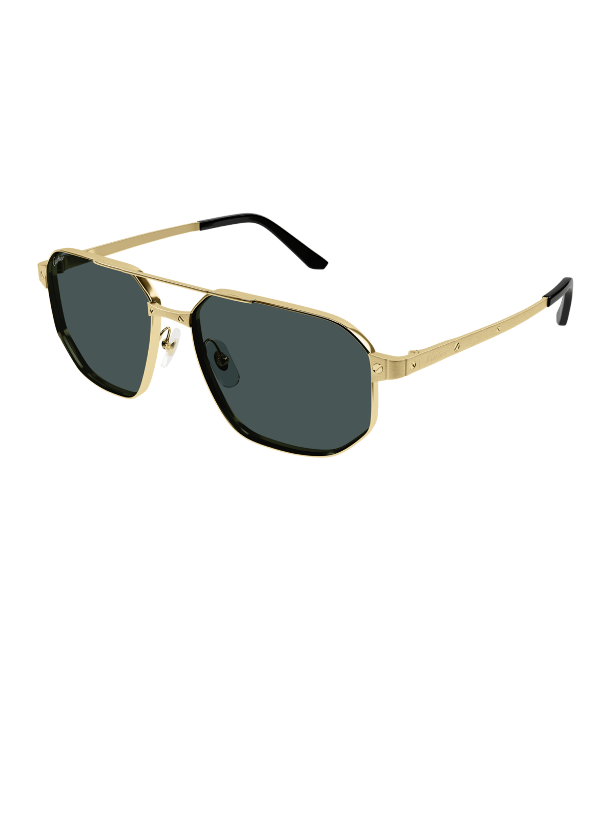 Модель у формі класичного авіатора, в золотій оправі, з зеленою лінзою.