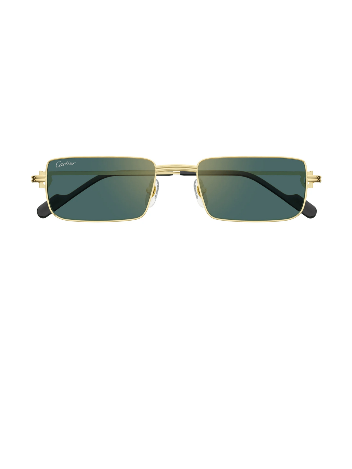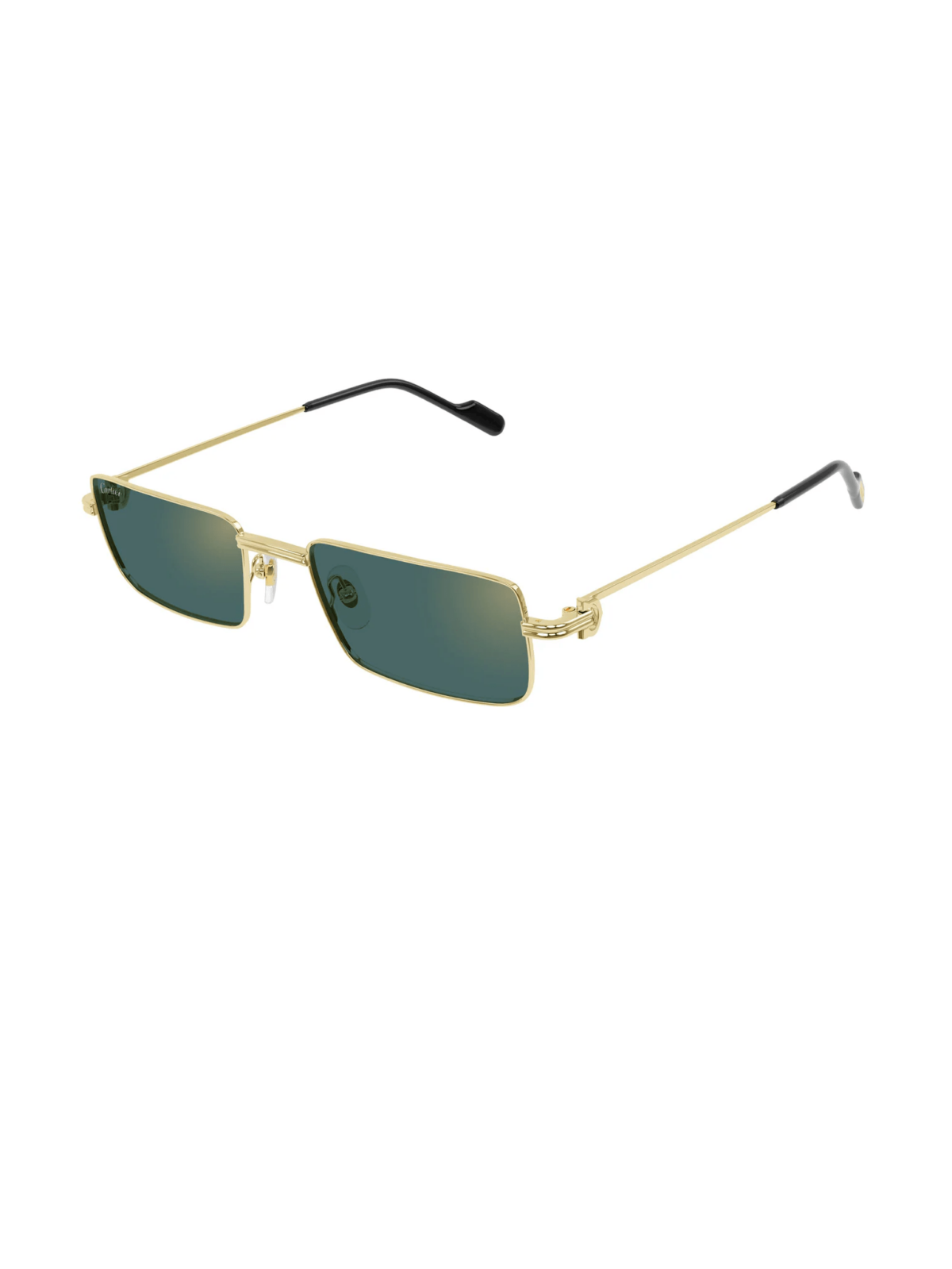 CARTIER CT0501S 007 – унісекс сонцезахисні окуляри з прямокутною металевою оправою в гладкому золотому покритті. Прямі тонкі дужки підкреслюють строгий сучасний силует. Лінзи зеленого відтінку з золотим блиском додають елегантності та виразності.