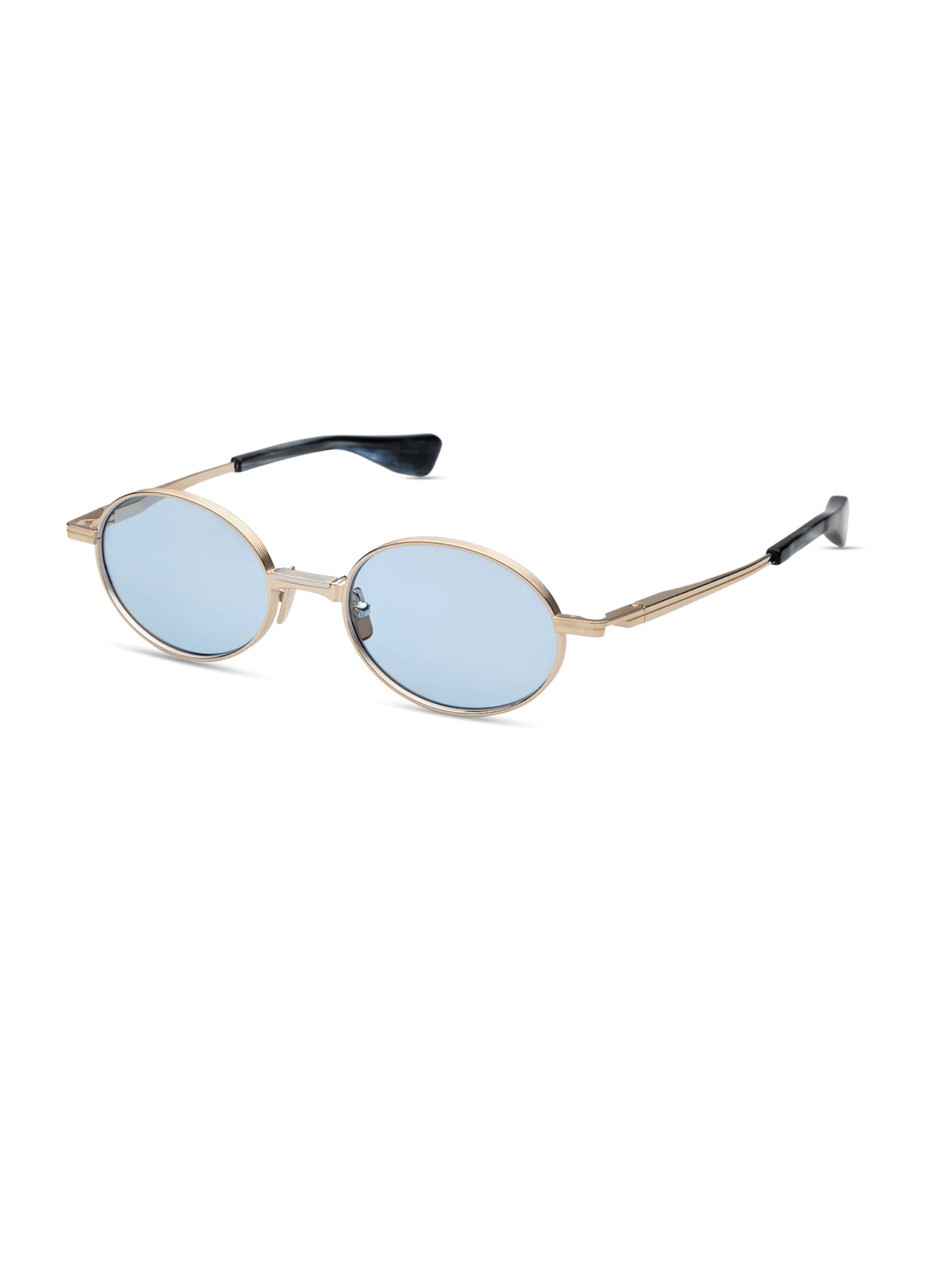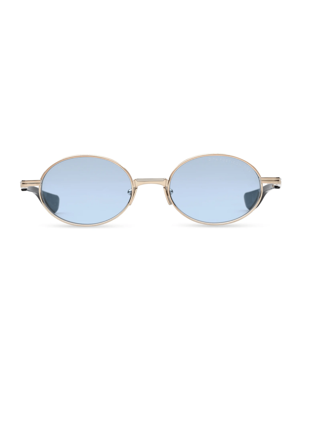 DITA DTS178-A-03 POETICON-ONE - Модель має овальний силует із тонким металевим обідком. Оправа — метал/титан в кольорі «White Gold / Silver». Лінзи — світло-блакитні, з градієнтом (blue to clear), забезпечують захист від UVA/UVB. Носоупори металеві, а дужки — із тонкими металевими вставками. Модель вироблена в Японії.