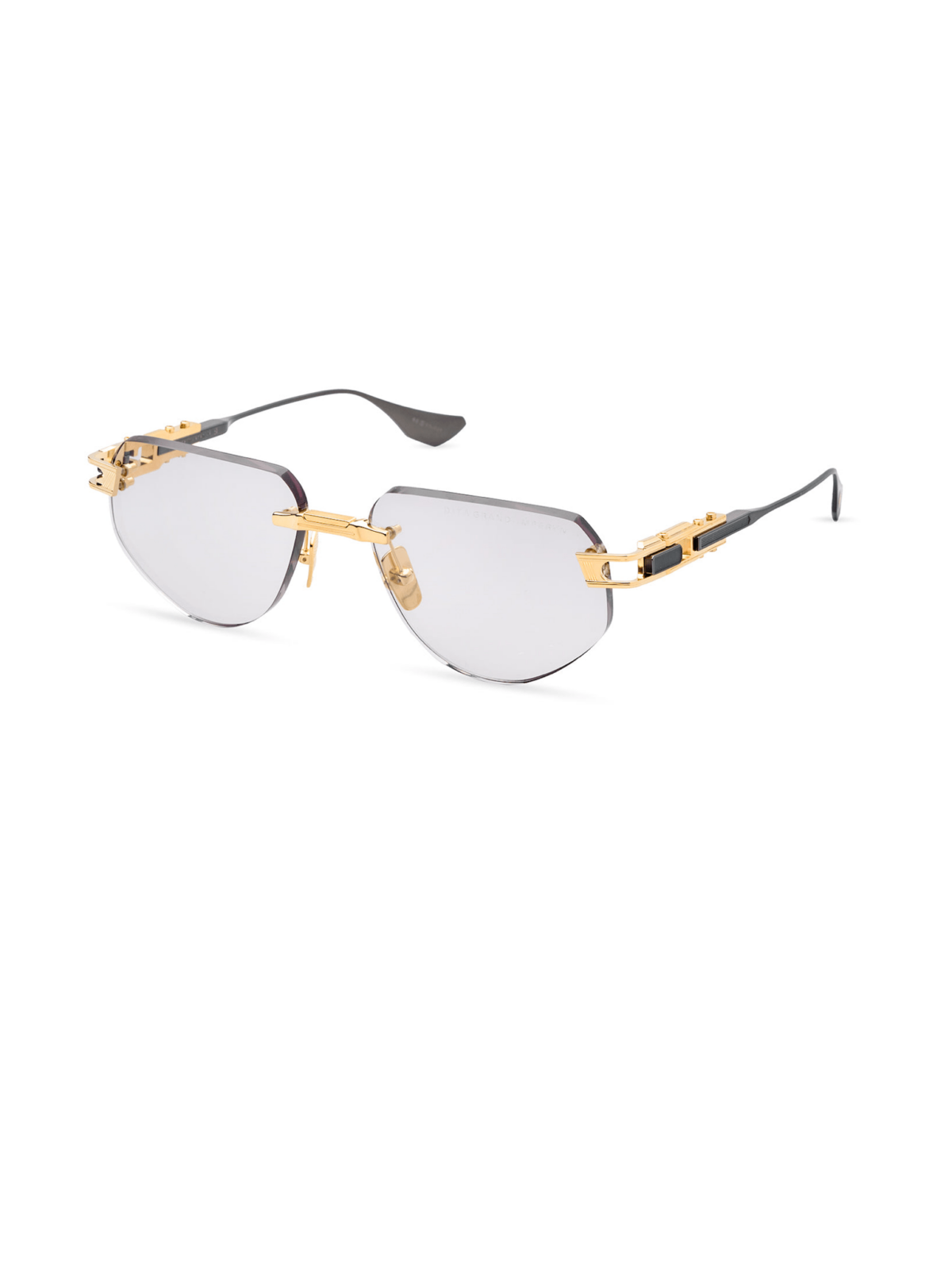 DITA DTX164-A-01 GRAND-IMPERYN - Модель безободкова, із титановою рамкою високої точності. Носоупори та шарніри титанові з текстурованим рельєфом для стабільної посадки. Колір оправи — золото з акцентами антик срібла. Виготовлено в Японії, що гарантує преміальну якість і точність збірки.