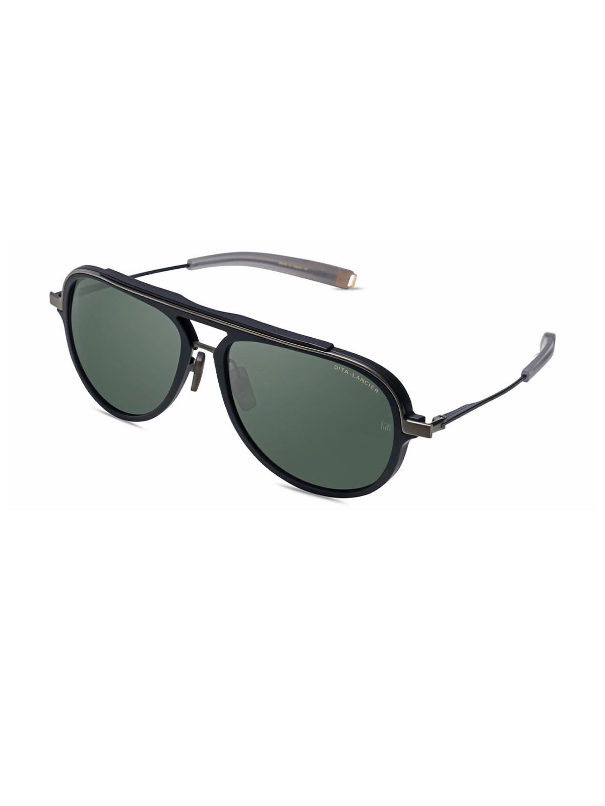 Модель має квадратний силует авіатора з подвійною перекладинкою. Оправа — комбінація металу та ацетату, передня частина — матово-чорна, дужки — в золотистому відтінку. Лінзи — зелені, поляризовані (“Land”), забезпечують зменшення відблисків під час руху. Носоупори регульовані, для кращого прилягання. Конструкція продумана для комфорту під час водіння або активного використання.