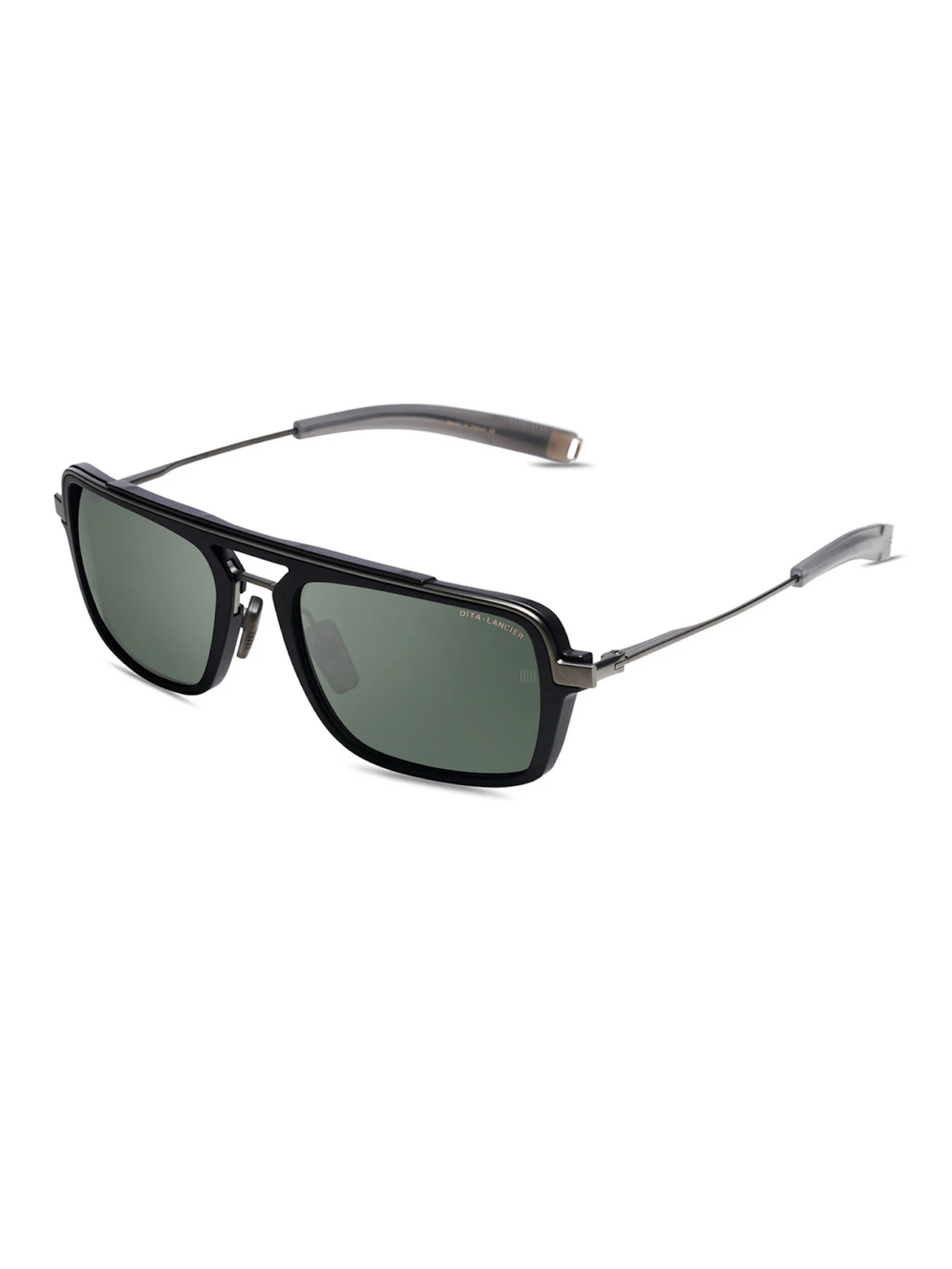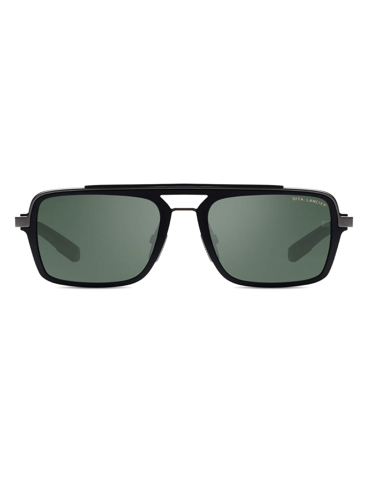 Модель має авіаторський силует із подвійною перекладинкою. Оправа — матово-чорна з гвинтовим металевим елементом (Matte Black / Matte Black Gun). Лінзи — світло-зелені (Air Green), забезпечують зорову чіткість і контрастність. Носоупори регульовані, дужки титанові з еластичною основою — для стійкої посадки. Модель виготовлена в Японії з увагою до інженерних деталей.