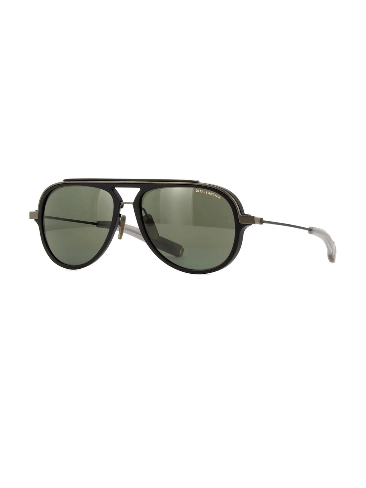 Силует — класичний авіатор із подвійною планкою. Оправа поєднує матово-чорний метал із темним акцентом. Лінзи — світло-зелені (Air Green), створюють охолоджений зелений тон, з антирефлексним і гідрофобним покриттям. Носоупори регульовані, для зручної посадки, дужки міцні, із шестигранними гвинтами. Зібрано вручну в Японії.