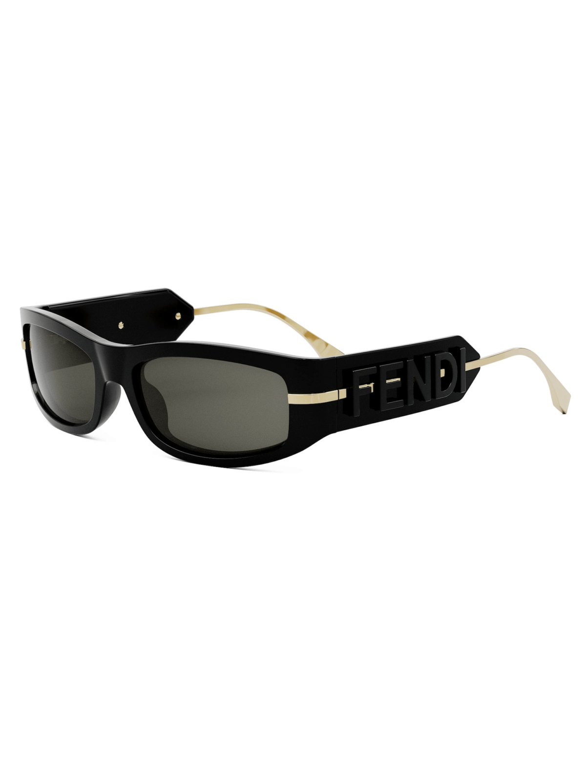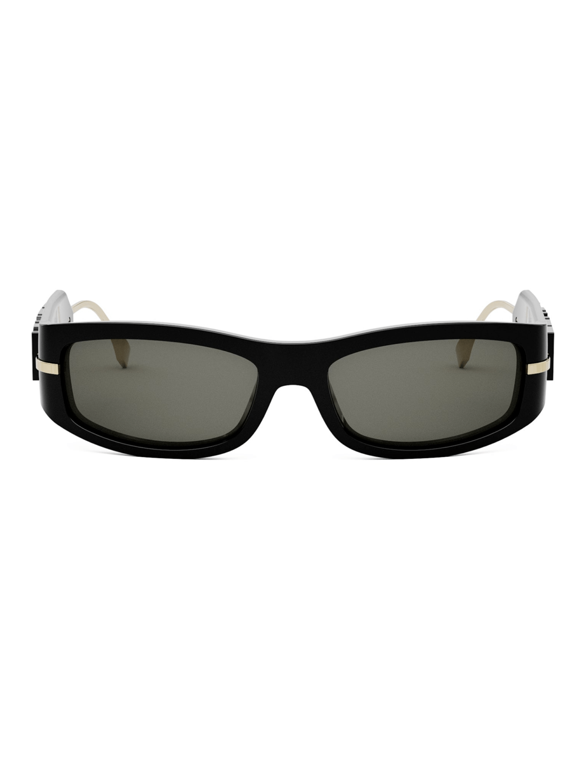 FENDI FE 40120I 01A - сонцезахисні окуляри у стильному силуеті маски, має прямокутну форму лінз чорного кольору та оправу у поєднанні чорного ацетату та металу з золотистим покриттям.
