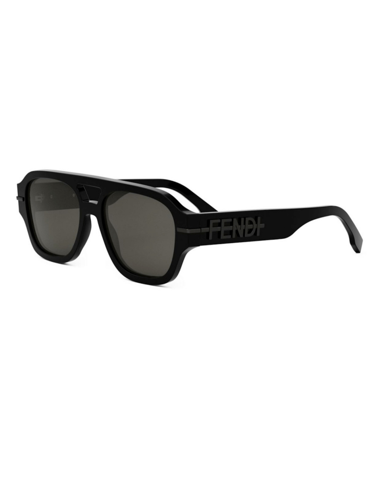 FENDI FE 40130F 01A - сонцезахисні окуляри з прямокутним силуетом авіатора, чорною однотонною лінзою та чорною оправою з ацетату.