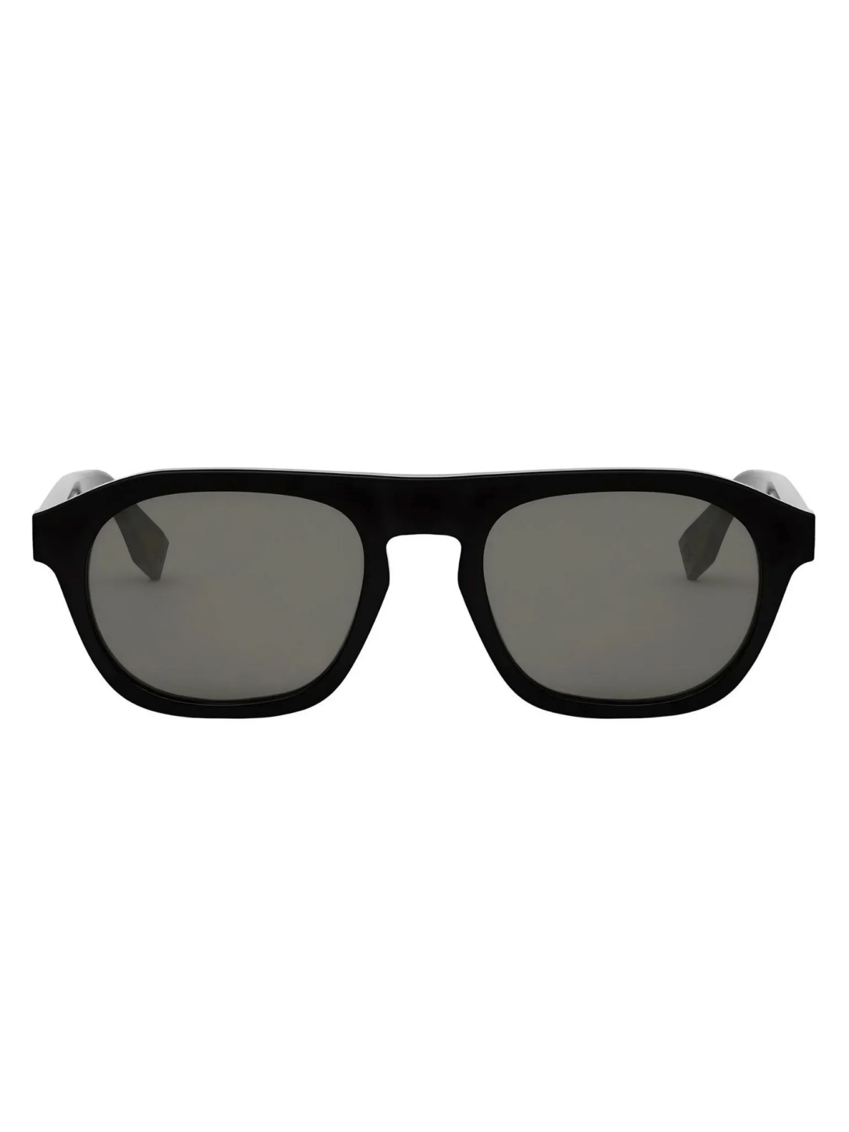 FENDI FE 40143I 01A - сонцезахисні окуляри з прямокутним силуетом авіатора, чорною однотонною лінзою та чорною оправою з ацетату.
