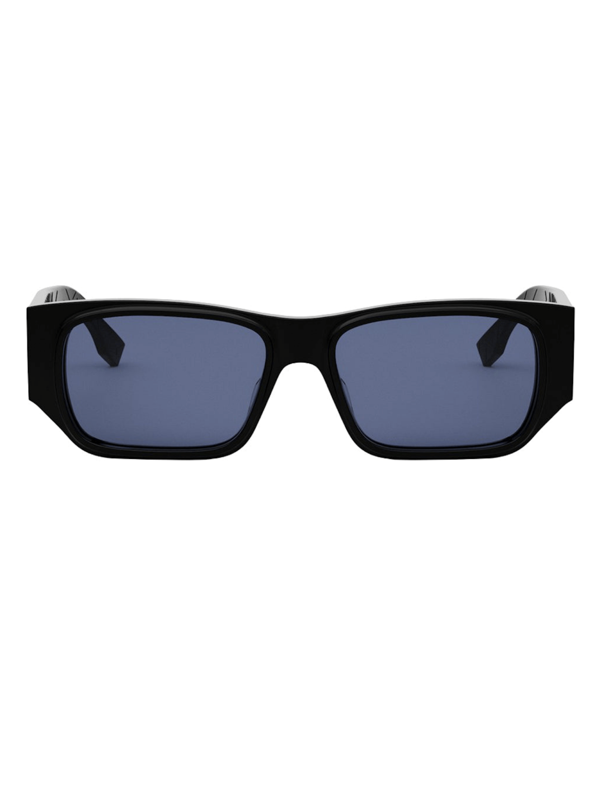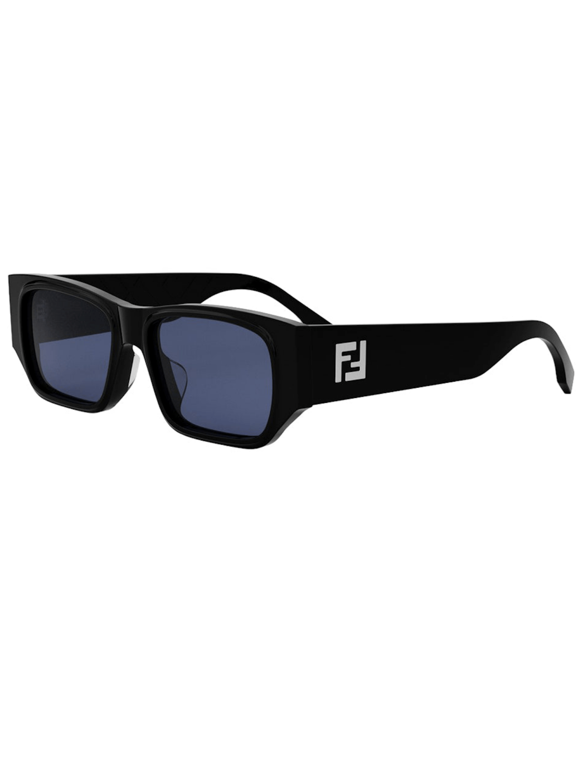 FENDI FE 40144F 01V - сонцезахисні окуляри у стильному силуеті маски, мають прямокутну форму лінз синього кольору та оправу з чорного ацетату.