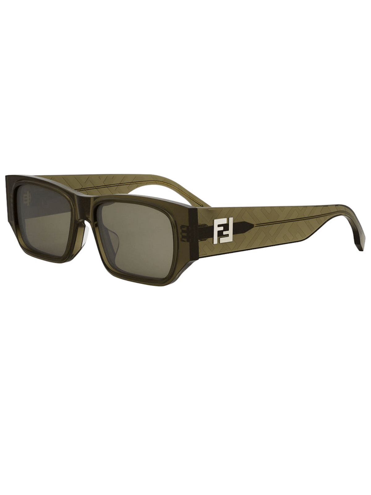FENDI FE 40144F 96N — сонцезахисні окуляри у стильному силуеті маски з прямокутною формою лінз кольору хакі. Оправа виконана з ацетату в темно-зеленому відтінку хакі.