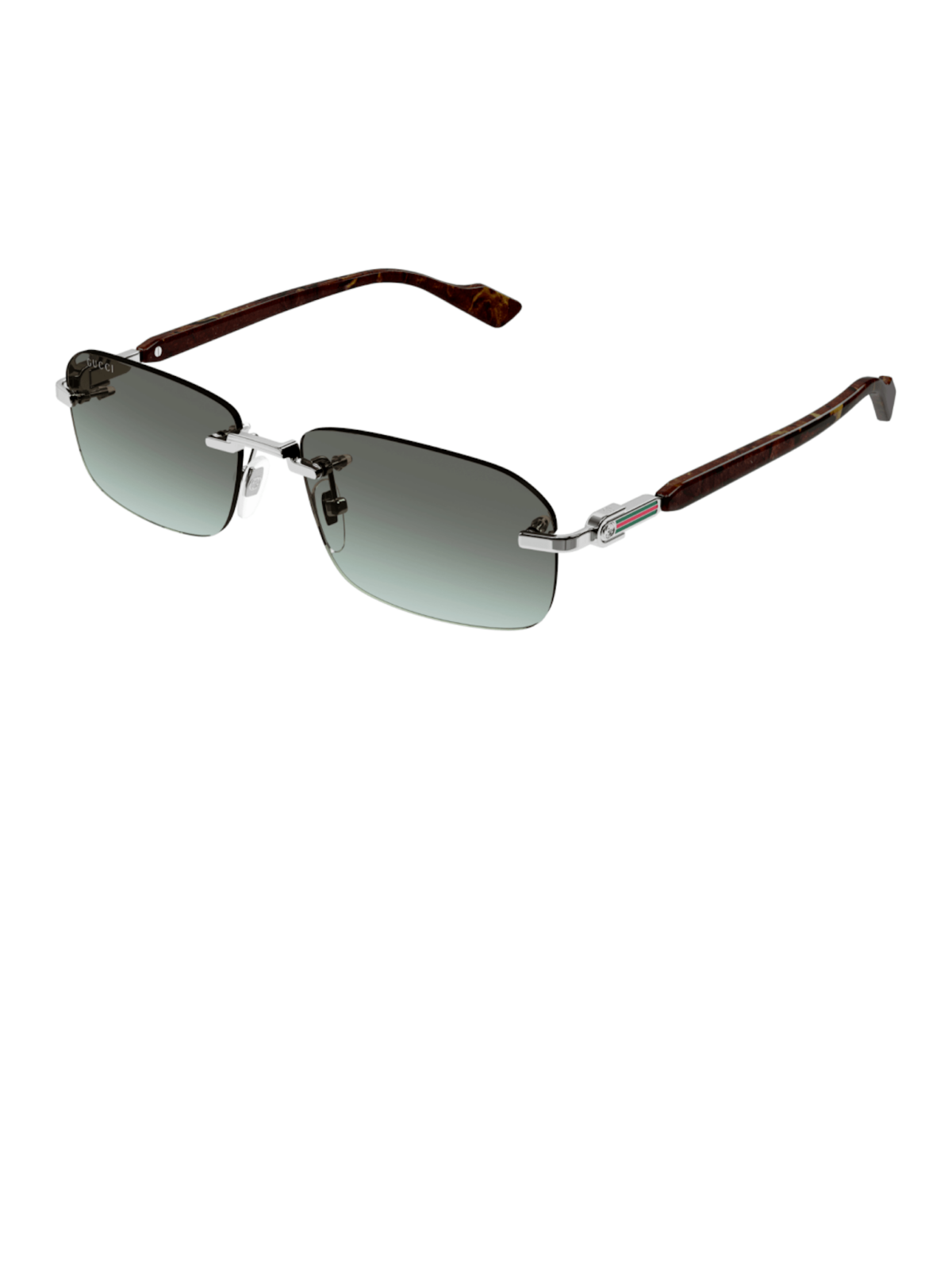 Безопрравна модель від Gucci. Прямокутної форми з фурнітурою срібного кольору з градієнтною зеленою лінзою.