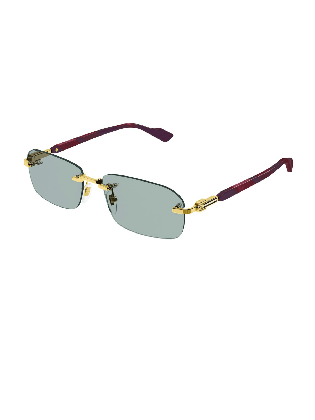 Безоправная модель от Gucci. Прямоугольной формы с фурнитурой золотого цвета с голубой линзой.