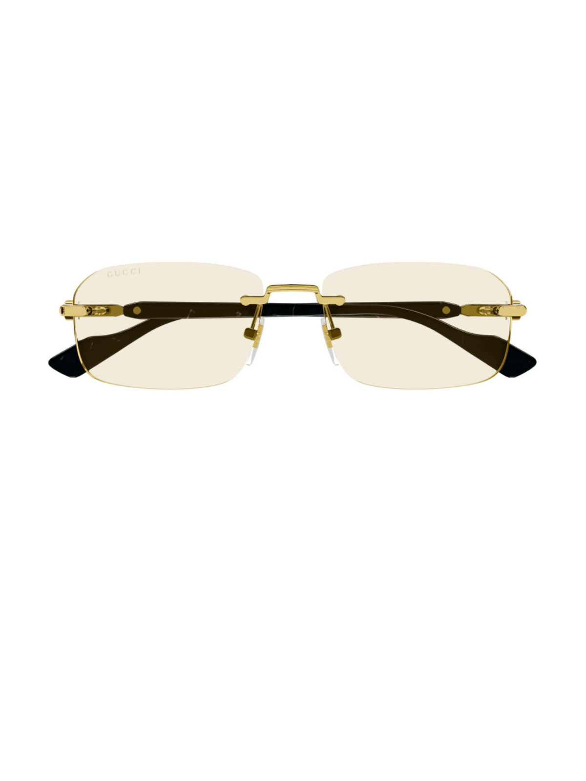 Безопрравна модель від Gucci. Прямокутної форми з фурнітурою золотого кольору з напівпрозорою лінзою.