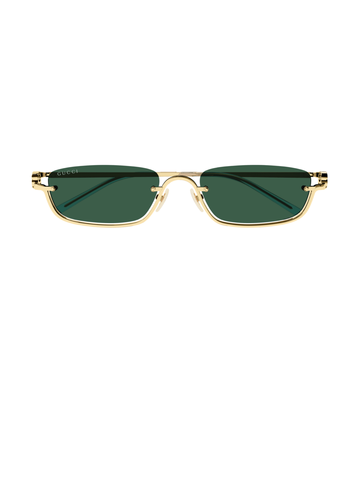 Напівобідкова модель від Gucci, в металевій опрраві золотого кольору, лінза прямокутної форми, зеленого кольору.