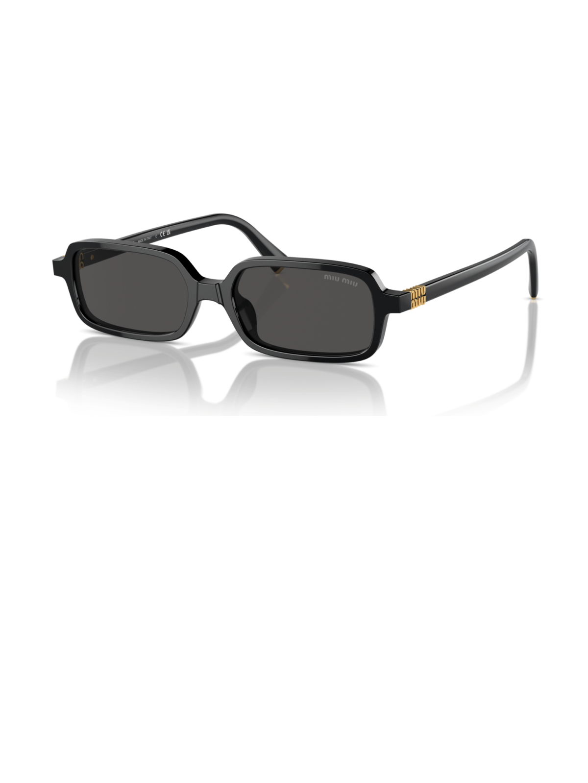 Хіт від бренду Miu Miu прямокутної форми, в чорному кольорі оправи з сірою лінзою.