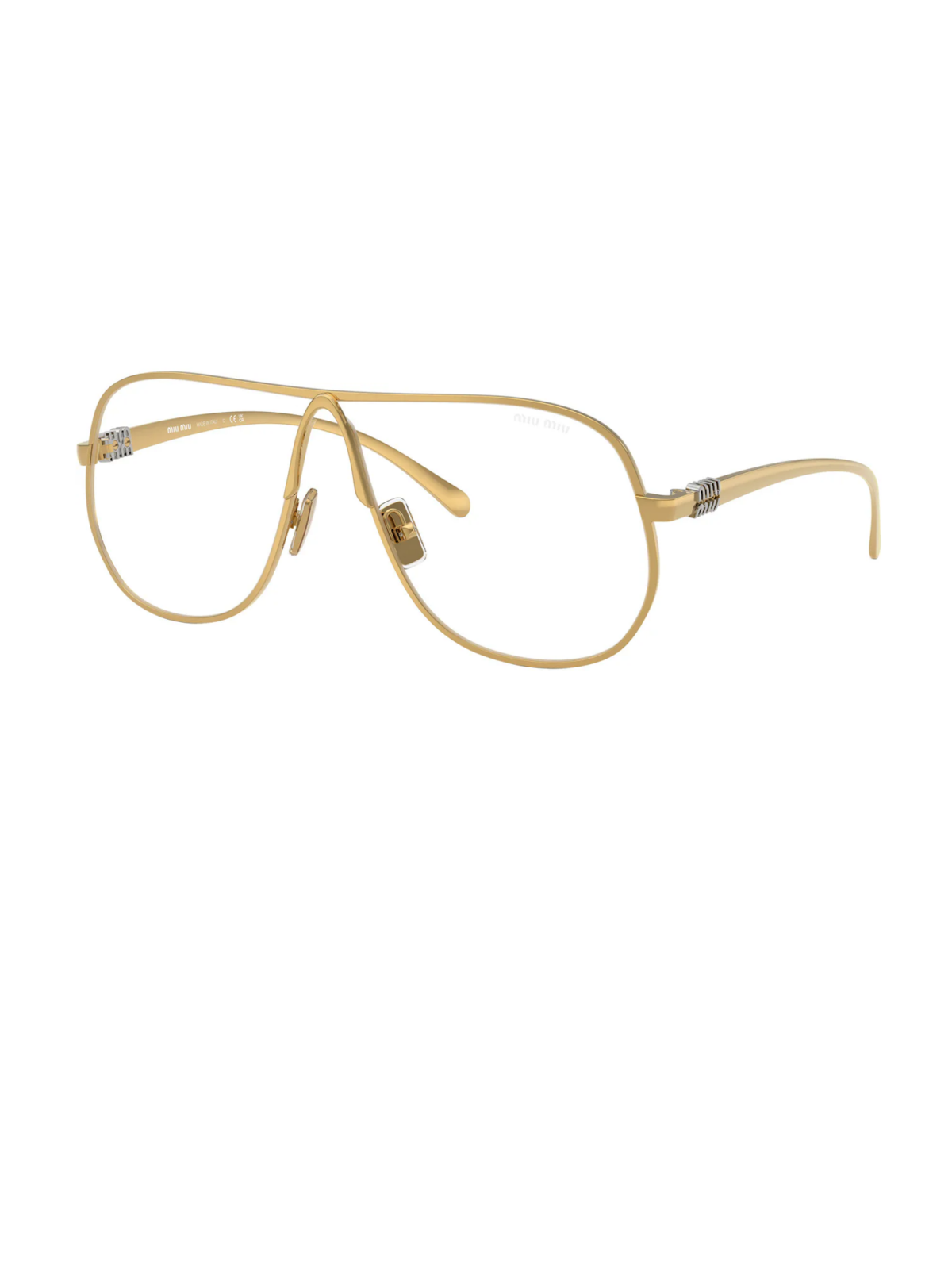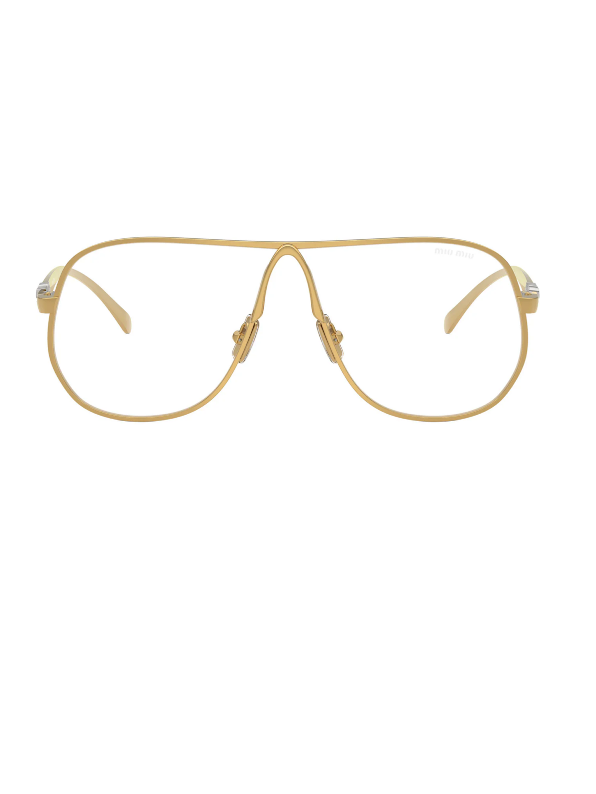 Модель має легко розширений силует у формі авіатор з плавними лініями та витонченими металевими дужками, що створюють стильний та жіночний вигляд. Золотиста металева оправа підкреслює елегантність, а прозорі лінзи надають образу легкості і сучасного fashion‑акценту, роблячи аксесуар універсальним для будь-яких луків.