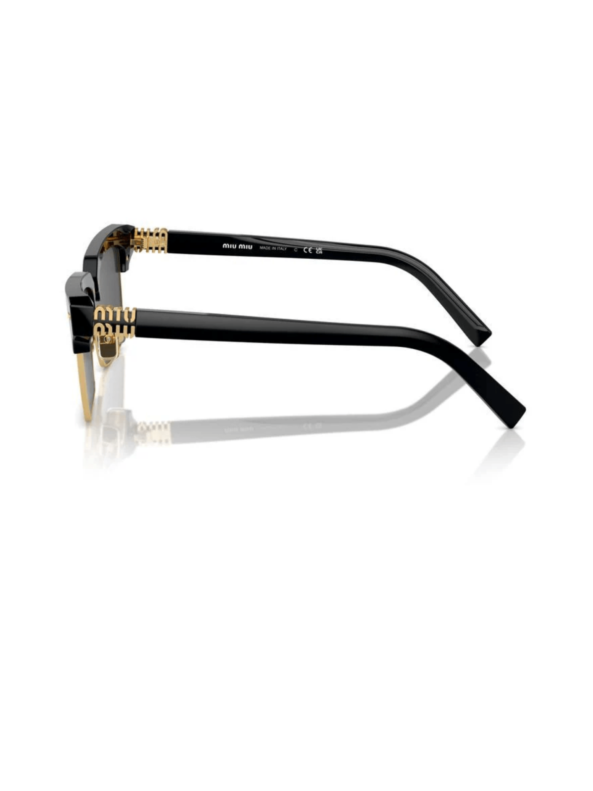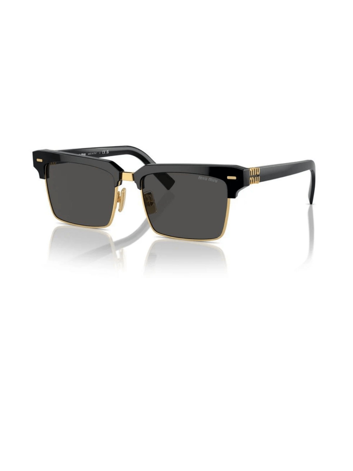 Модель квадратної форми від Miu Miu, оправа - поєднання ацетату та металу, логотип бренду на завушниках. В чорному кольорі ооправи з сірою лінзою.