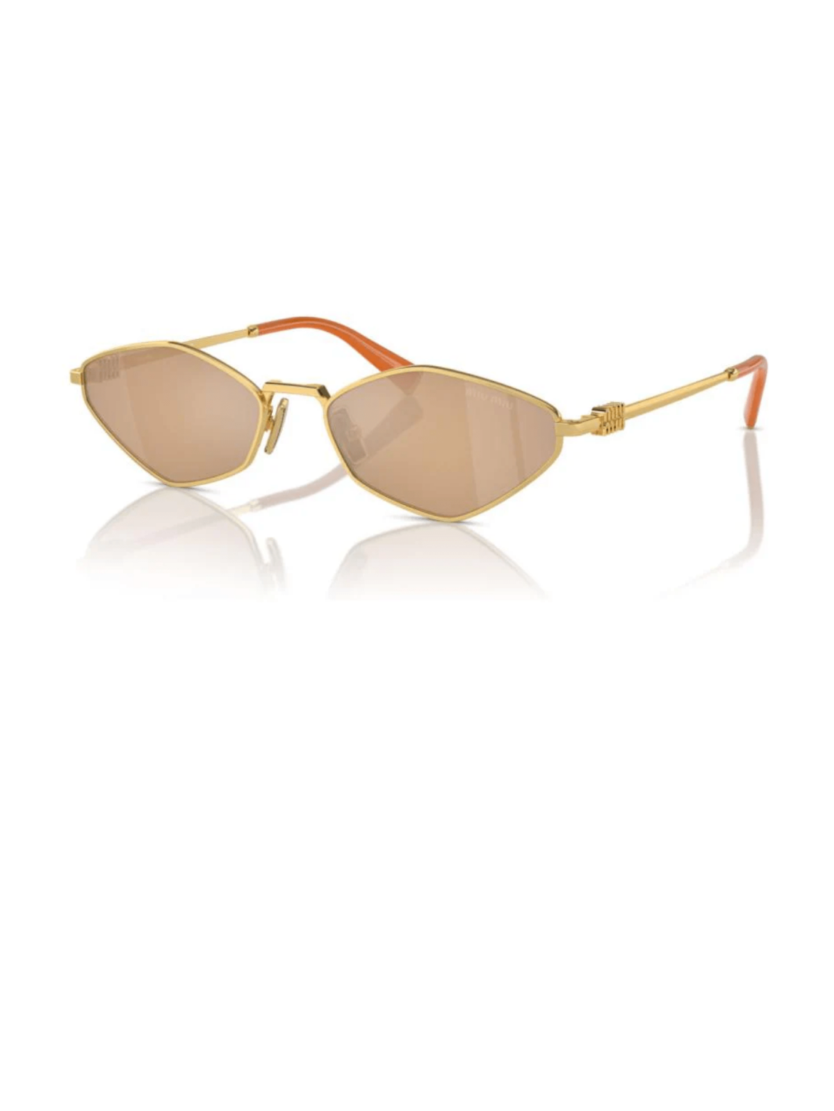 Модель ромбовидної форми від Miu Miu, в золотій оправі з жовтою лінзою.