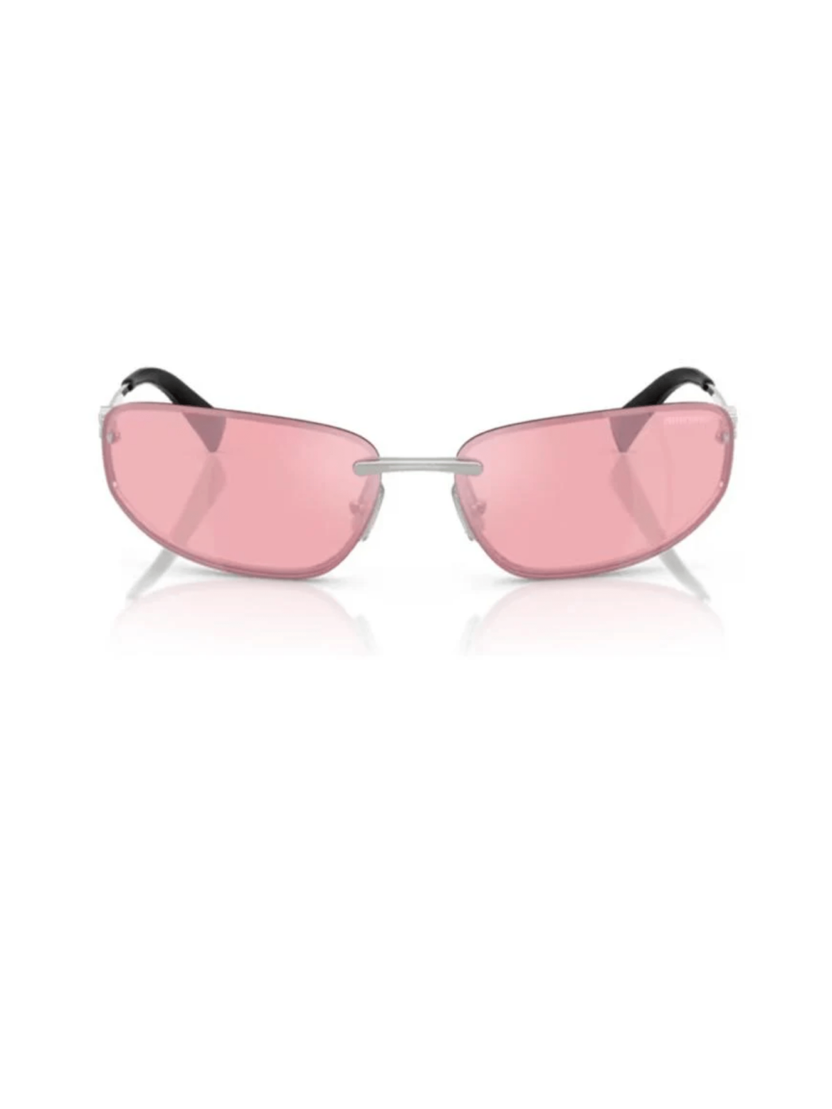 Модель у формі маски від Miu Miu, з рожевою, дзеркальною лінзою.