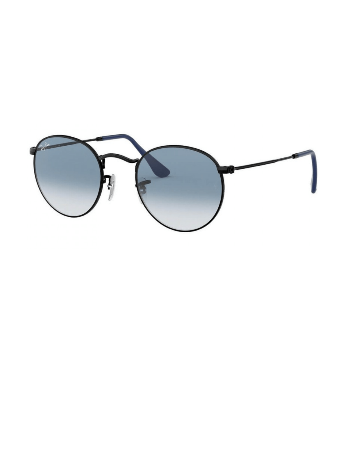 Модель округлої форми з блакитною-градієнтною лінзою, в металевій оправі, чорного кольору. Модель без оригінальної комплектації.