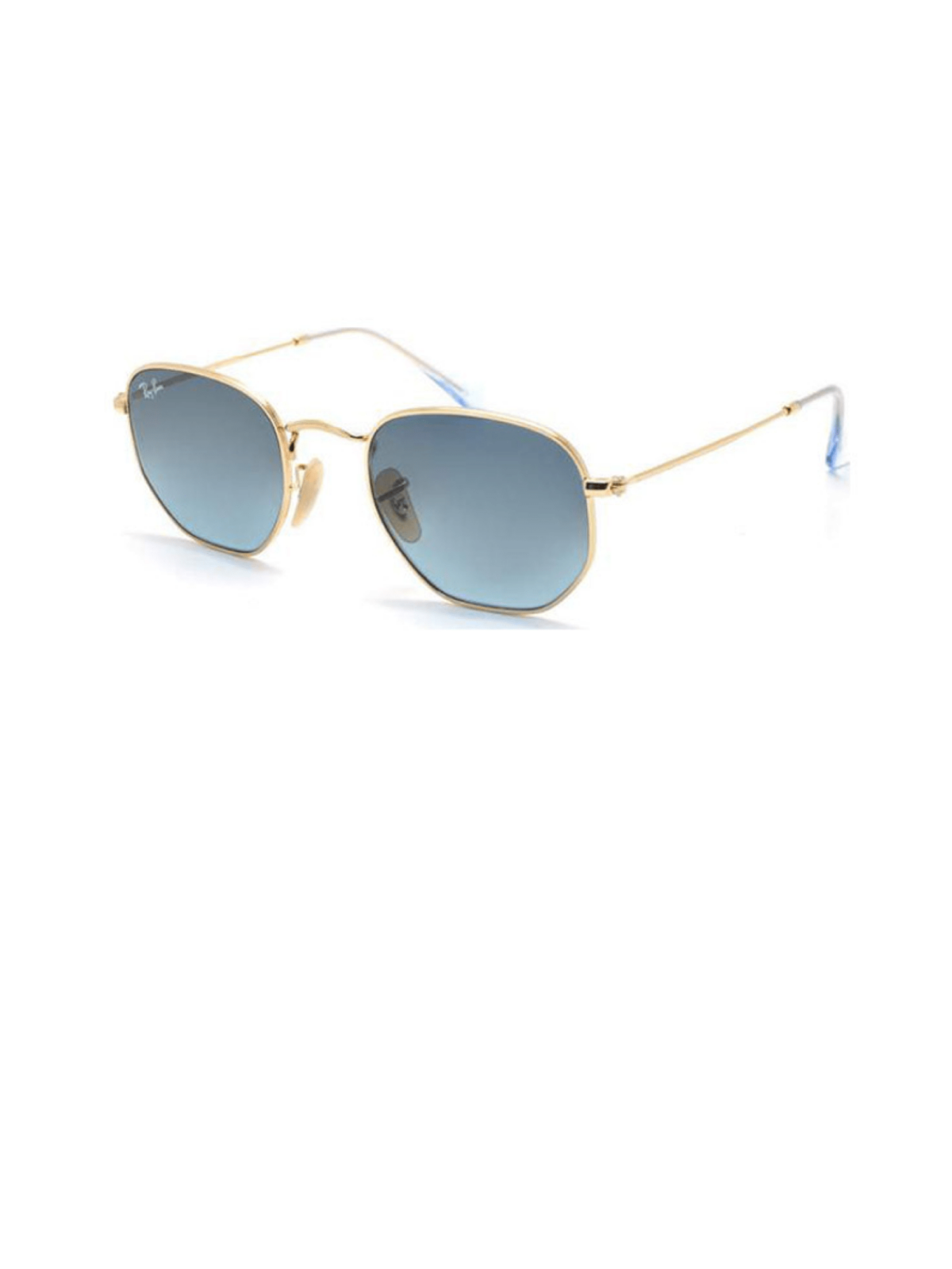 Культова модель HEXAGONAL від Ray Ban, в металевій оправі золотого кольору, з блакитною-градієнтною лінзою.