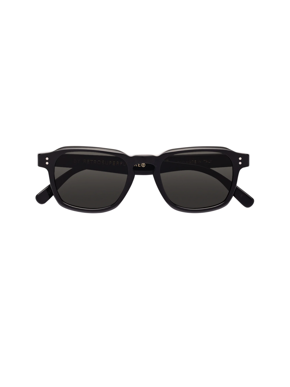 Сонцезахисні окуляри з широким горизонтальним силуетом і чіткими геометричними лініями, що поєднують ретро‑натхнення з сучасним міським дизайном. Чорна глянцева оправа з ацетату створює виразний контур і збалансовано окреслює обличчя. Темно‑чорні лінзи у тон оправи виглядають стримано й універсально, підходять для щоденного носіння в сонячну погоду. Модель має широку верхню лінію та трохи загострені дужки, що надають образу сміливого характеру. Виготовлені вручну в Італії — якісний щоденний аксесуар із виразним сучасним характером