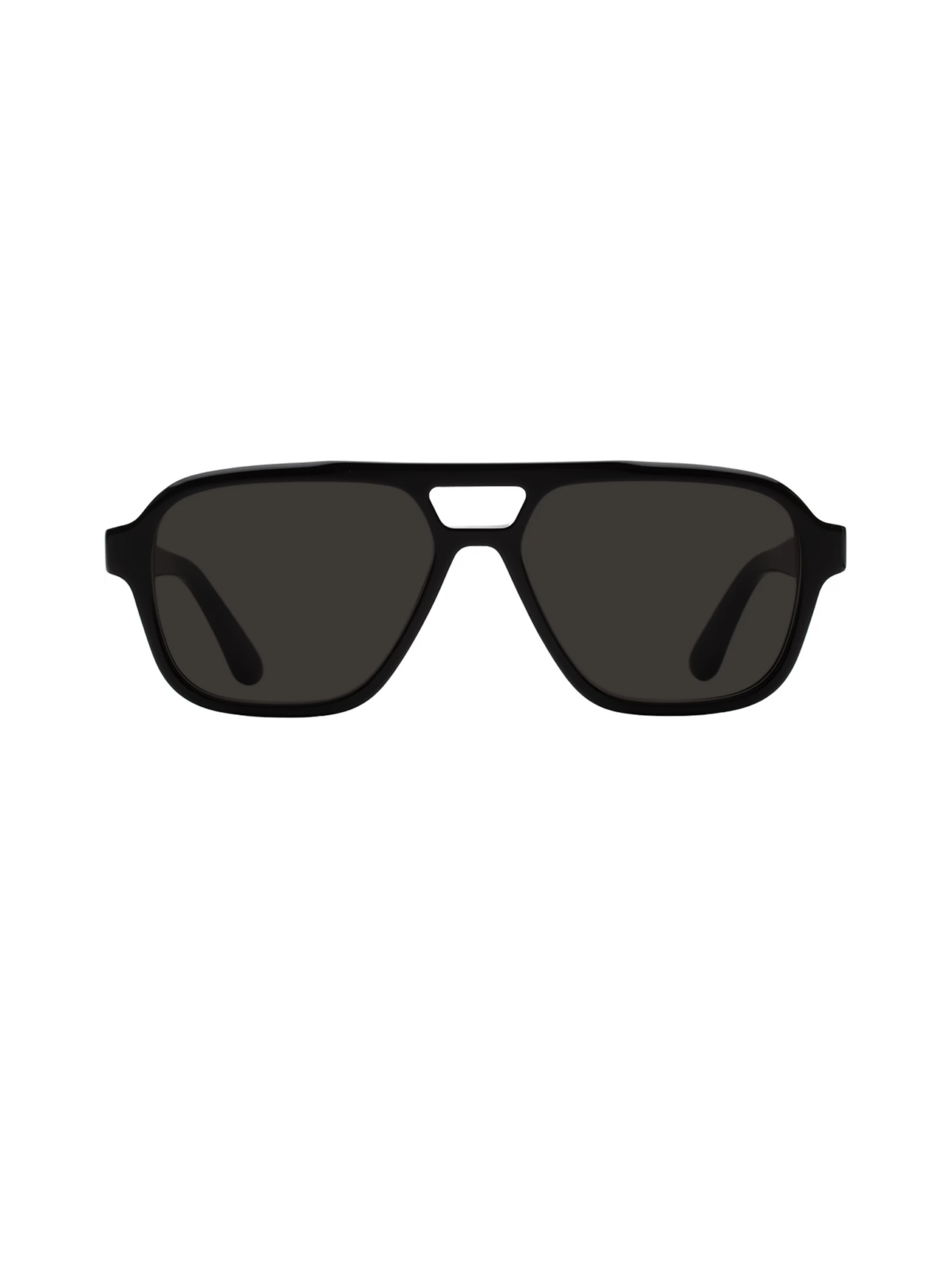 Сонцезахисні окуляри з авіаторським силуетом і сучасним мінімалістичним дизайном, що поєднує стриману класику та міську естетику. Чорна глянцева оправа з високоякісного італійського ацетату виглядає лаконічно й елегантно, а темно‑чорні лінзи створюють глибокий контраст, що підкреслює структуровану форму. Подвійний міст і інтегровані носоупори додають комфорту та впевненості у посадці. Сучасний вибір для тих, хто цінує поєднання функціональності та стилю.
