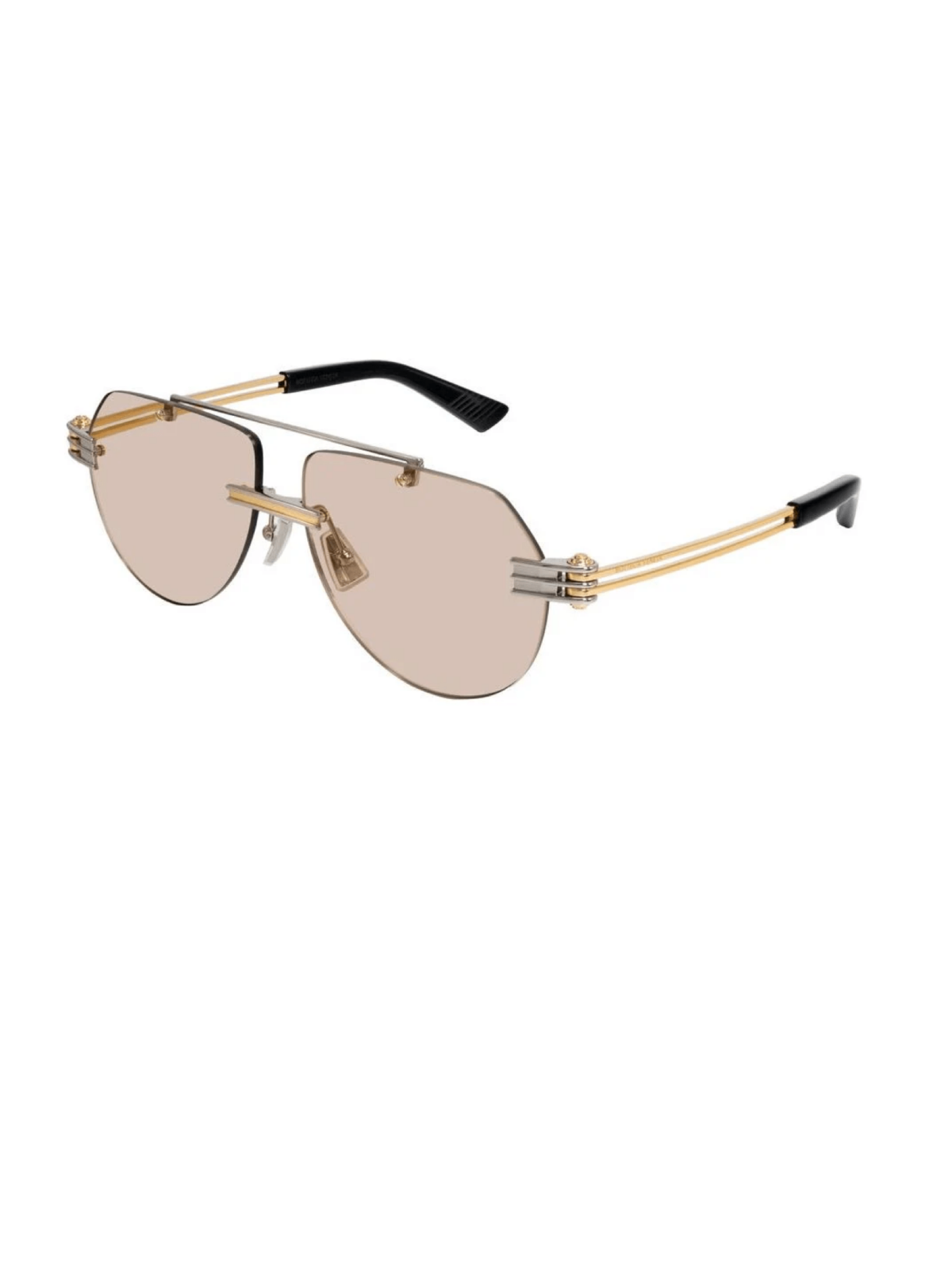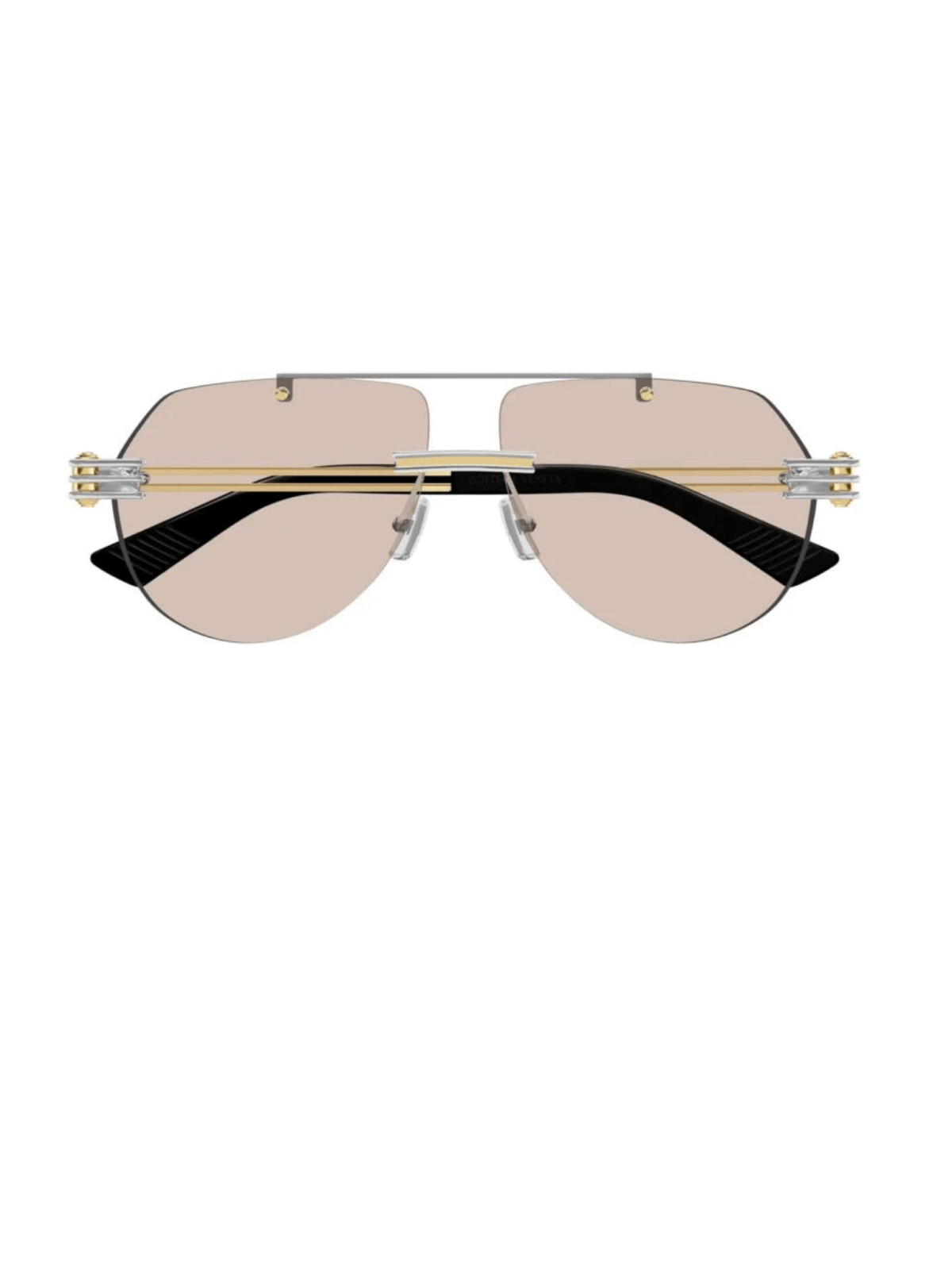 Безоправный силуэт классического авиатора, металлическая оправа в сочетании золотого и серебряного цвета.