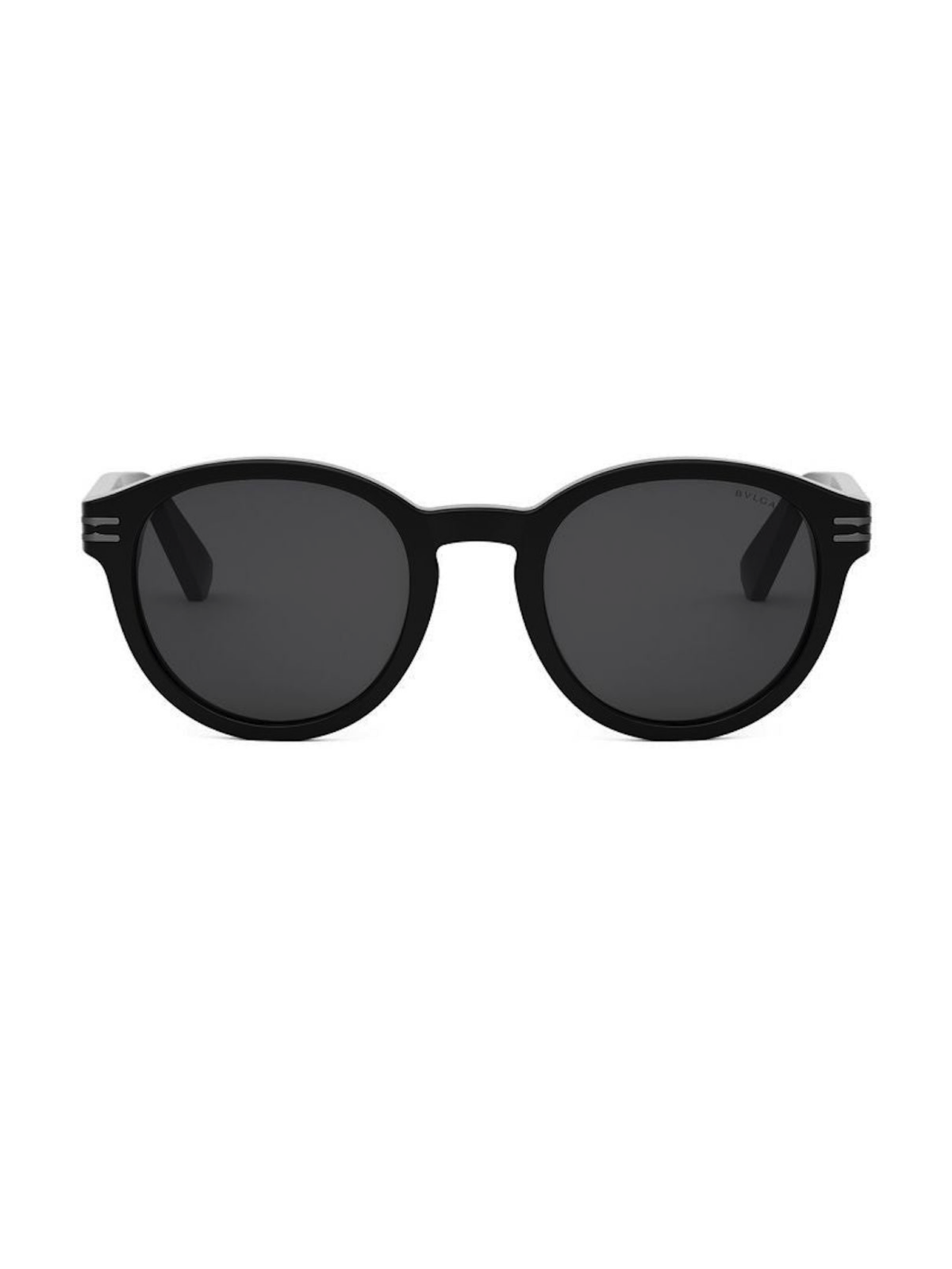 BVLGARI BV400281 01A – солнцезащитные очки с классическим округлым силуэтом, оправа сделана из ацетата и имеет черный цвет, линзы темно-серого однотонного цвета.