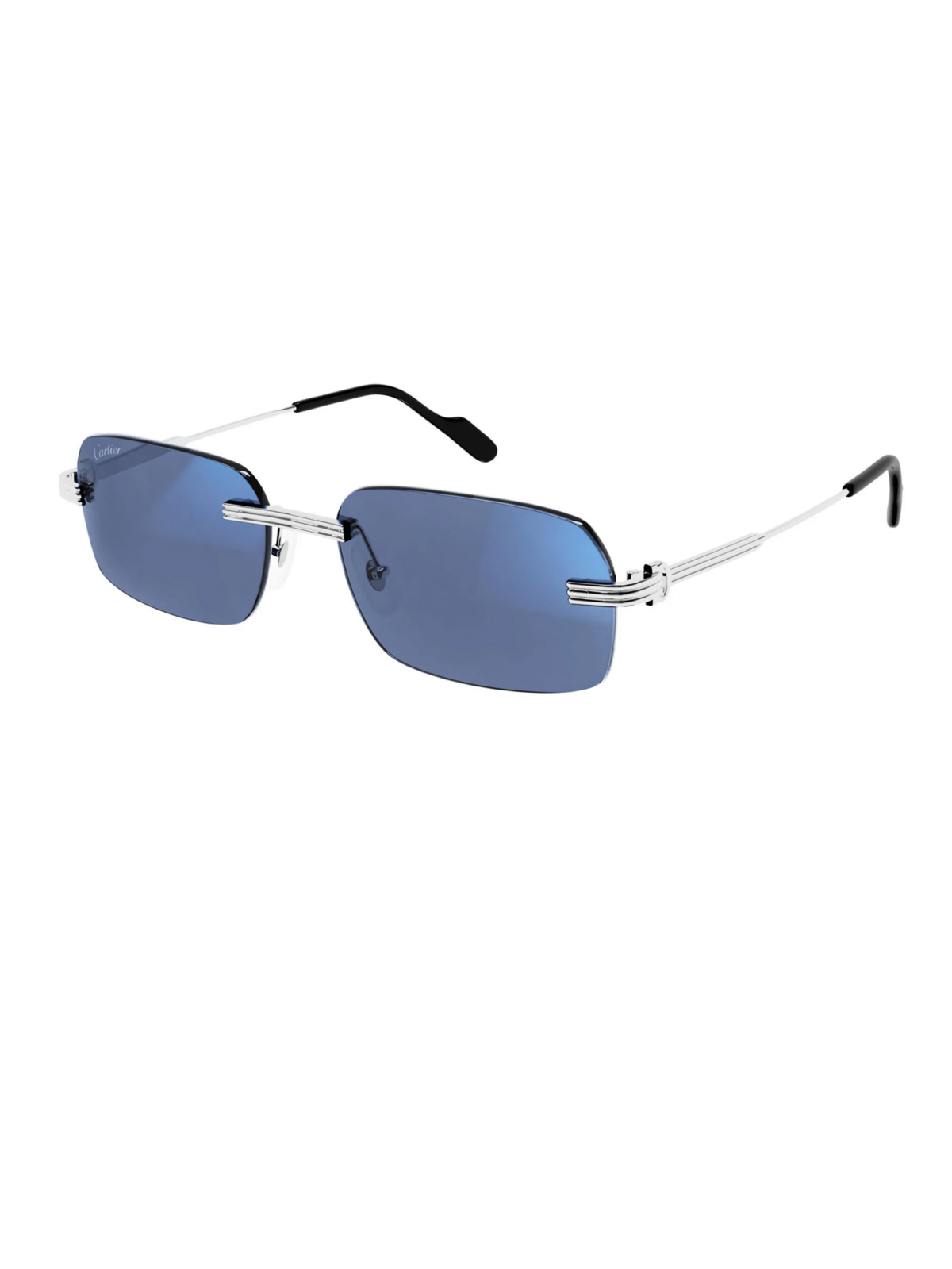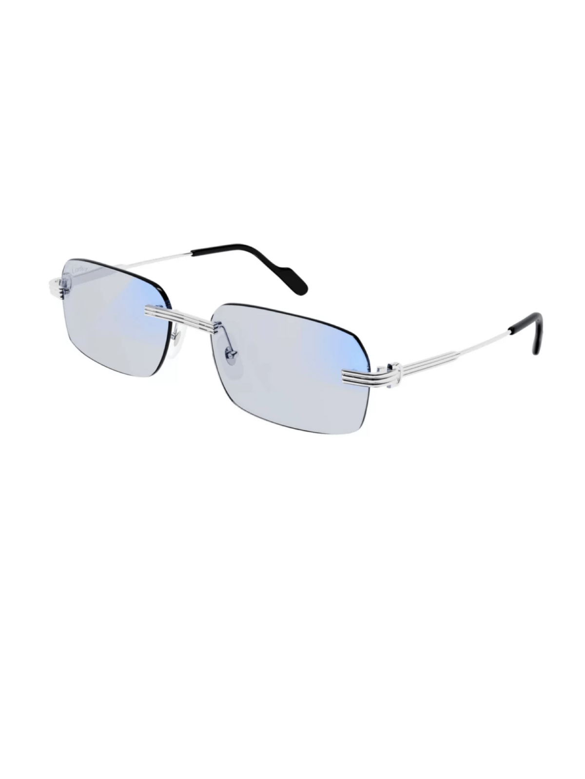Культовая безоправная модель от Cartier в прямоугольном слуэте, оправа - покрытие белое золото 5мм, фотохромная линза с серо-голубым оттенком.