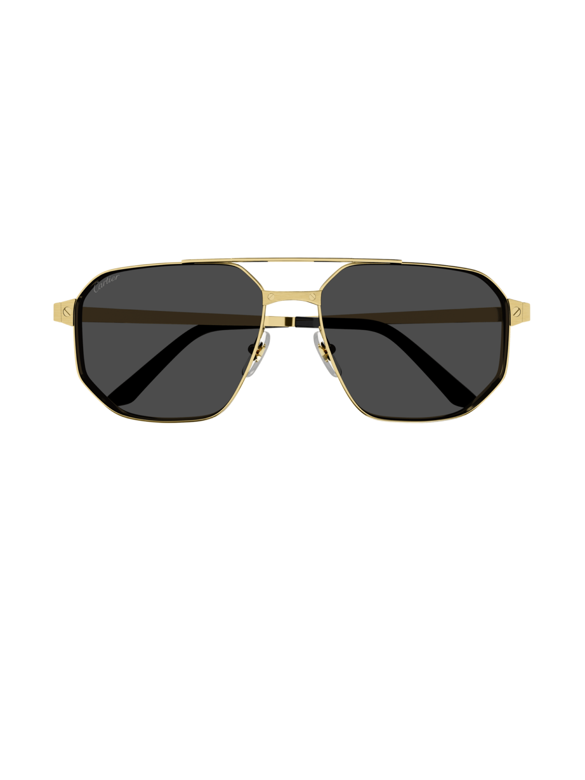 Модель в форме классического авиатора, в золотой оправе, с серой линзой.
