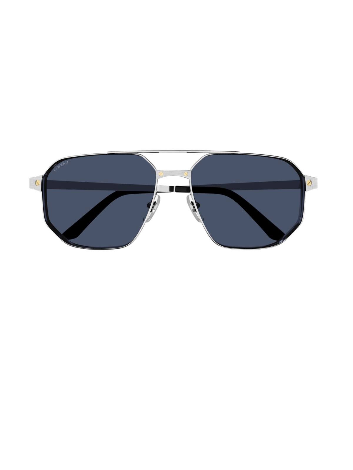 Модель в форме классического авиатора в оправе из белого золота (напыление 5мм) с голубой линзой.