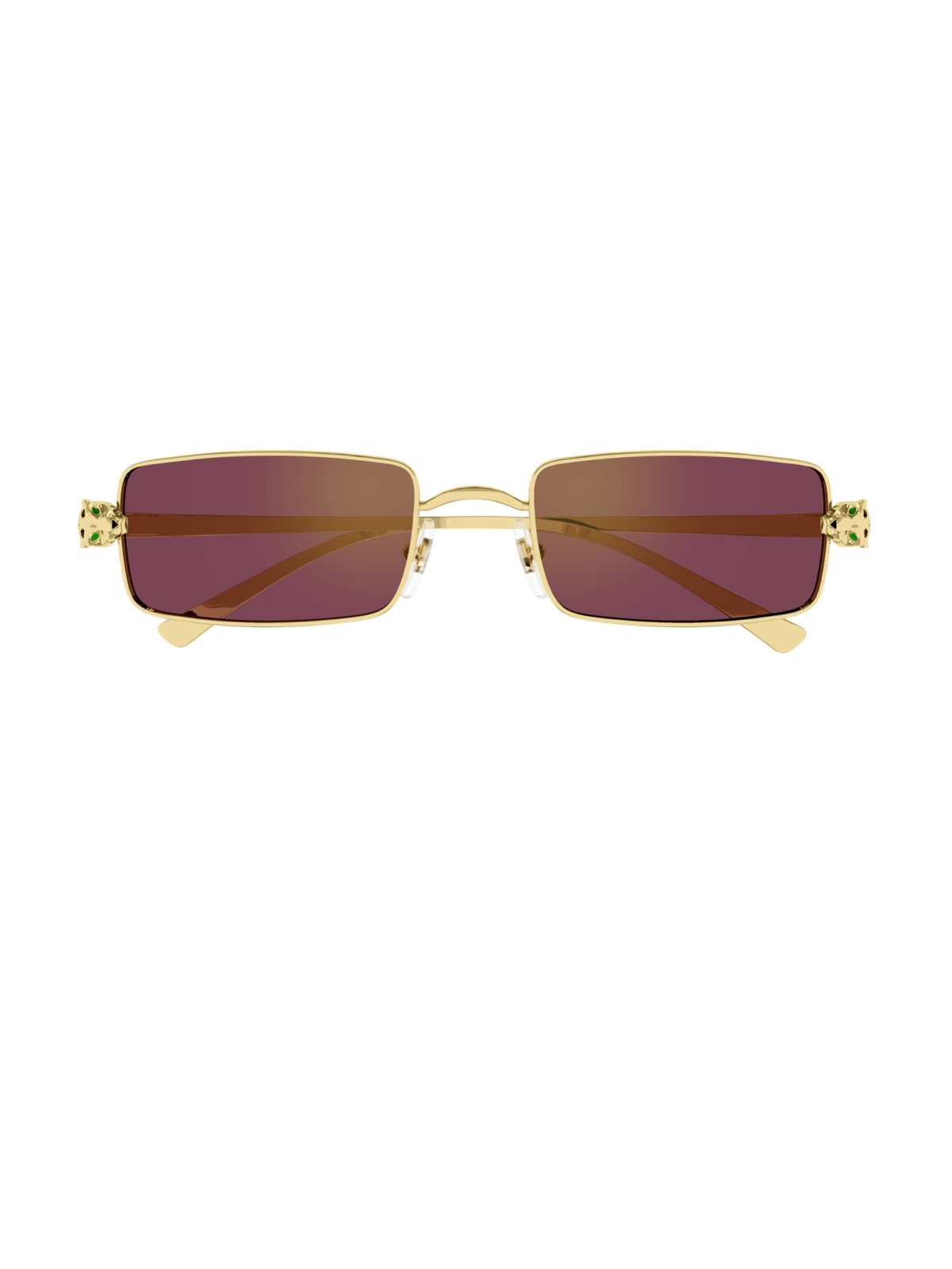 Модель прямоугольной формы, оправа – напыление желтое золото 5мм, с линзой боррдового цвета.