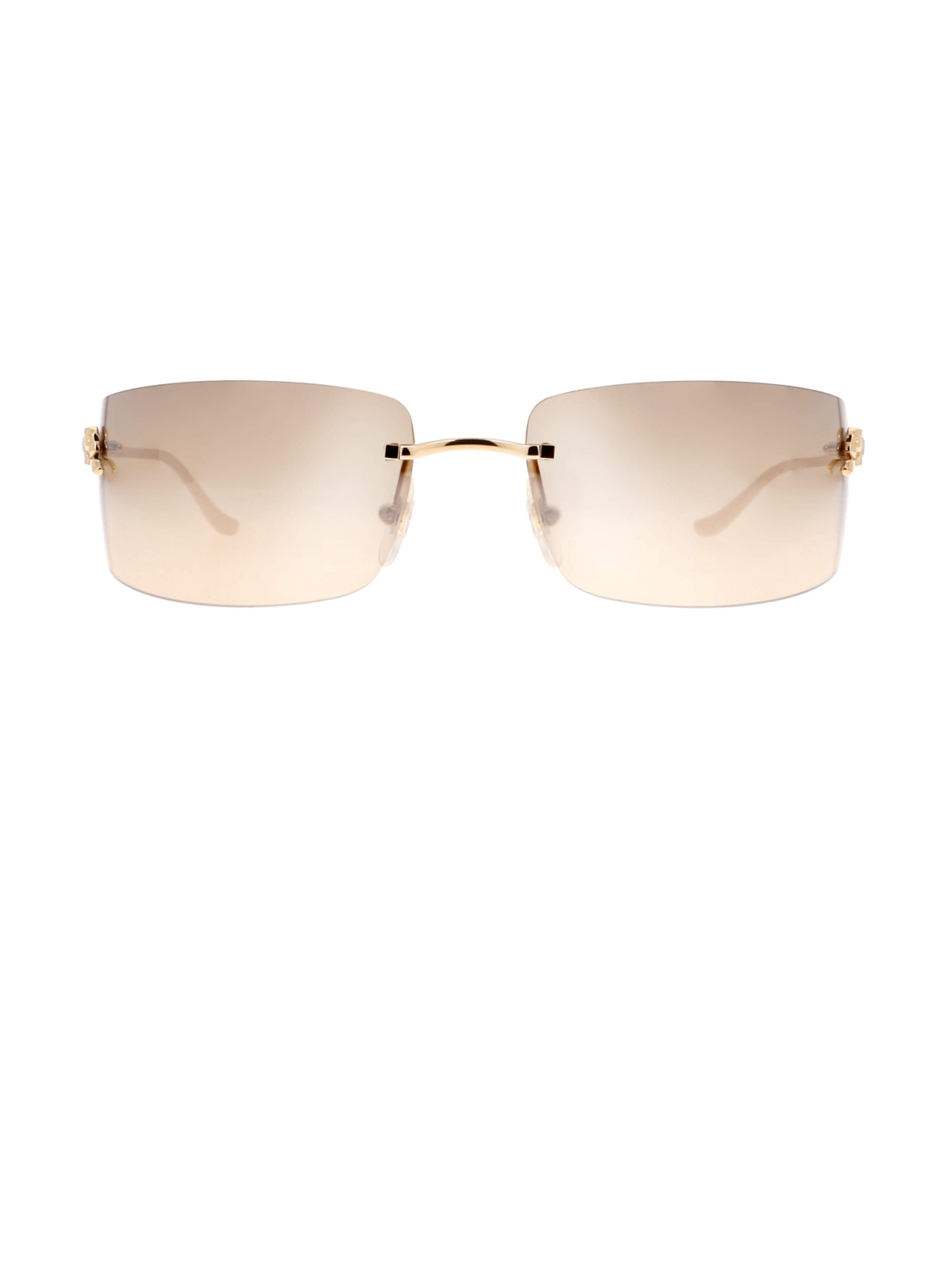 Модель в форме маски в золотой оправе с коричневой градиентной линзой.