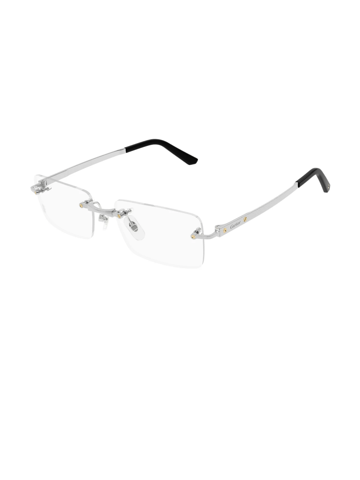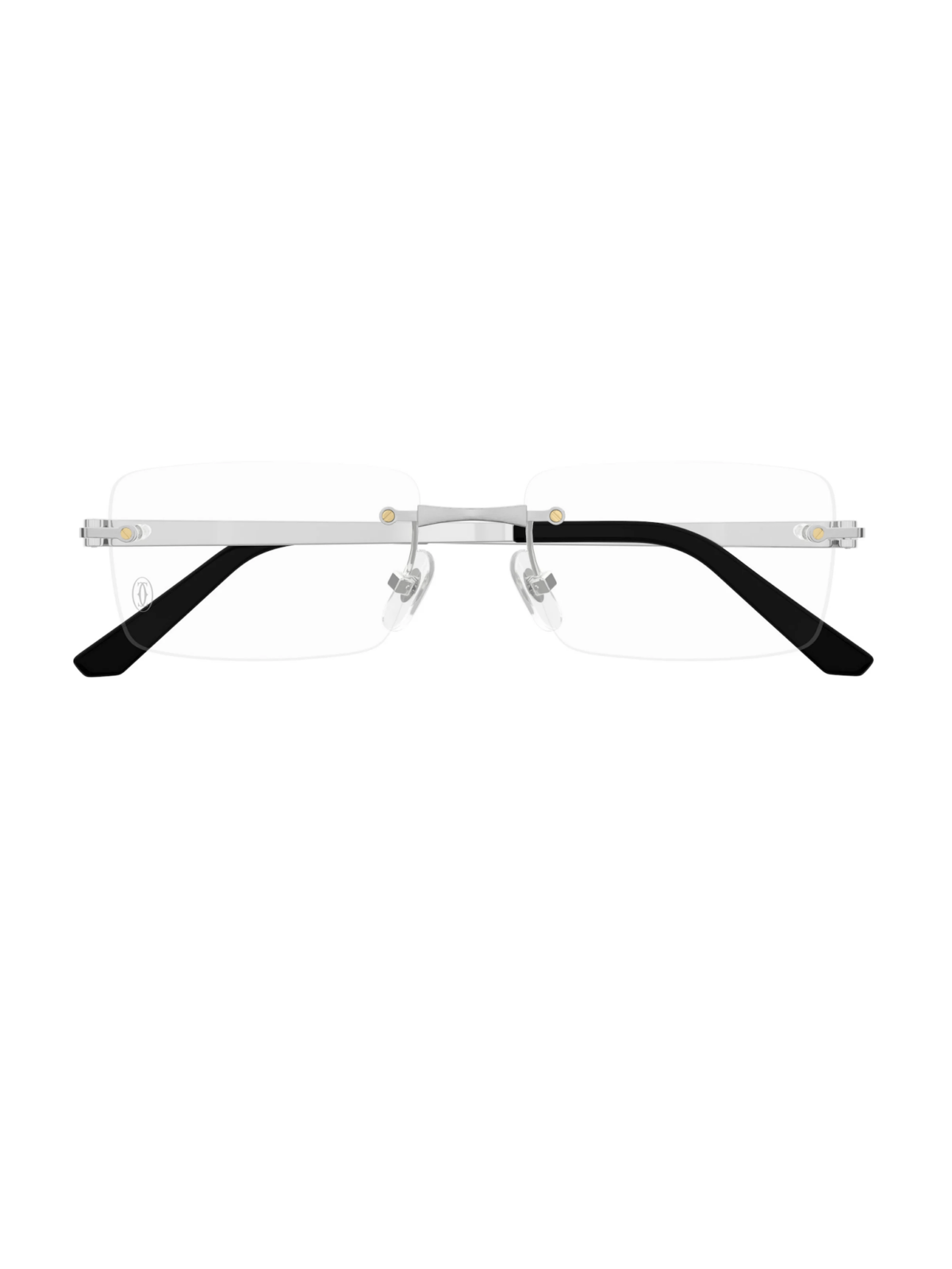 CARTIER CT0511O 002 – прямоугольная оправа, изготовленная из титана, с сочетанием матового и гладкого платинового покрытия. Серебряные скобки подчеркивают изящный геометрический силуэт и легкость конструкции. Дизайн совмещает минимализм и фирменную эстетику Cartier.