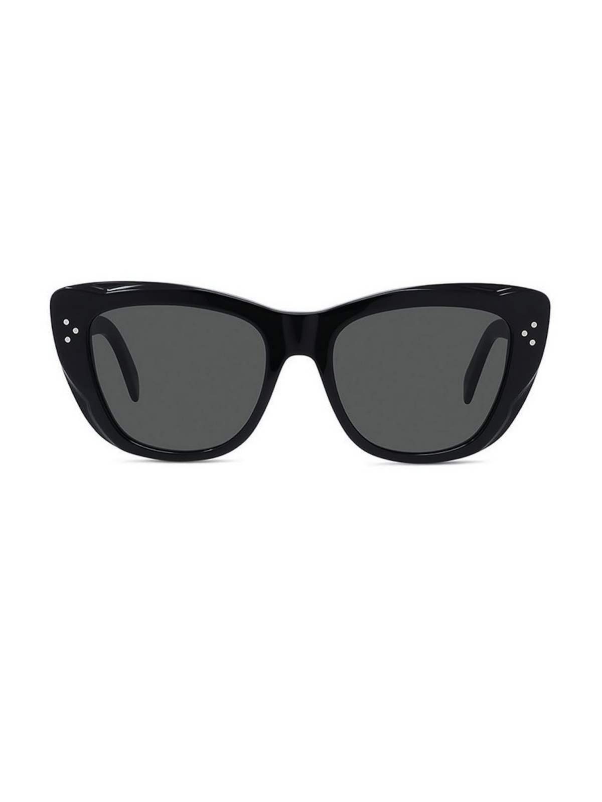CELINE CL 40199I 01A - Модель имеет csv-eye силуэт, оправу черного цвета из ацетата, массивные дужки с логотипом Celine. Линзы темно-серые однотонные.