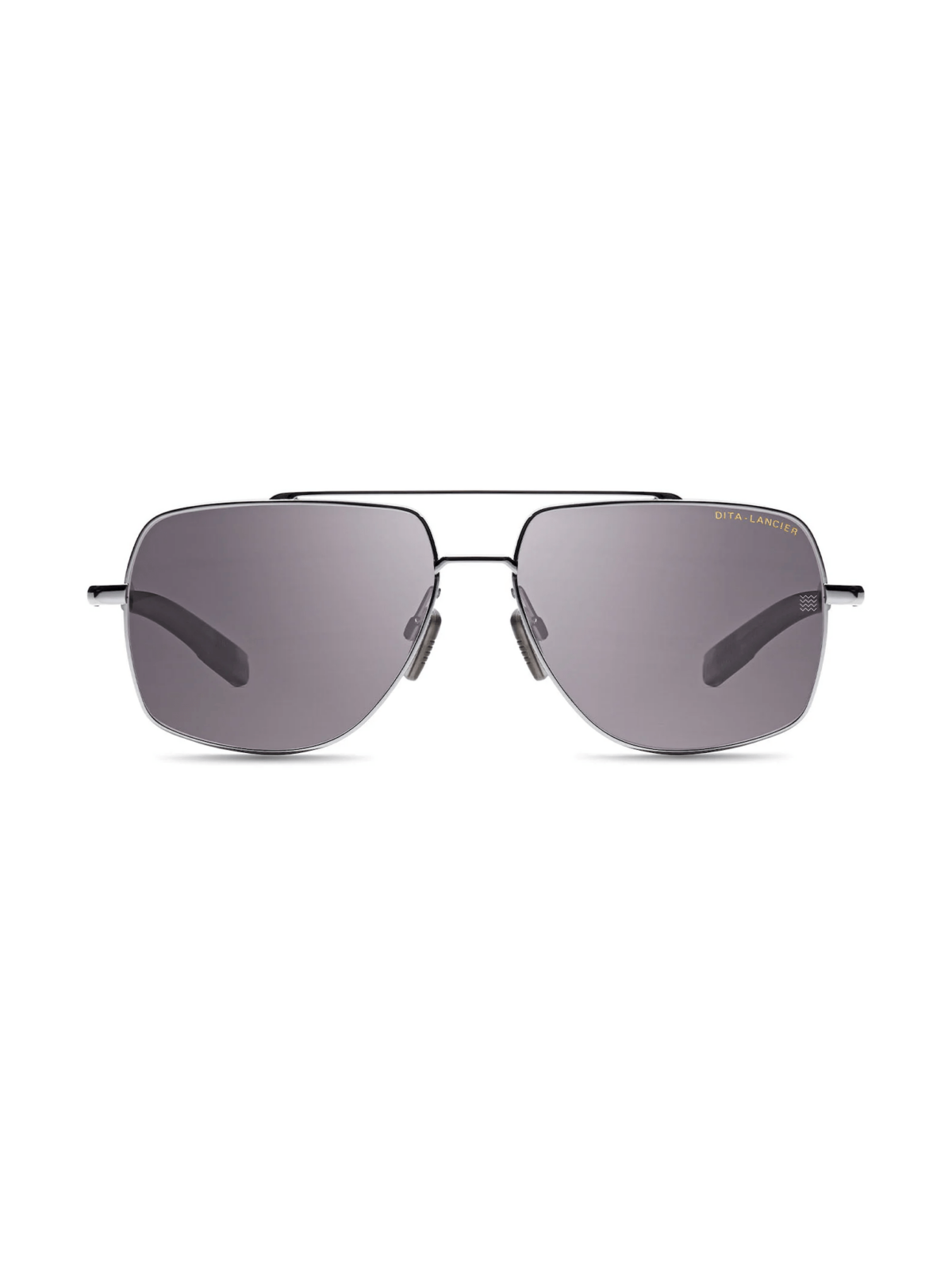 Модель имеет классический авиатор-силуэт с двойным мостом. Оправа выполнена из титана, цвет оправы – серебристо-черный (Black Palladium). Линзы – поляризованные, серого (“Sea Grey”) оттенка, обеспечивают 100% защиту от UVA/UVB. Носоупоры регулируемые, скобки тонкие, металлические. Модель сделана в Японии.