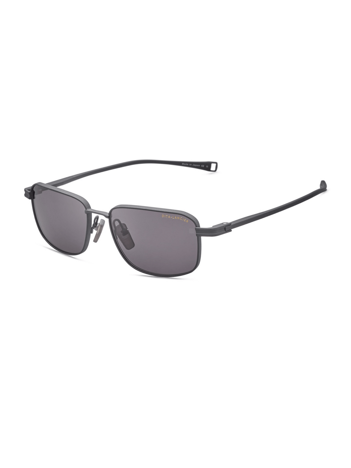 Модель имеет прямоугольный силуэт с лёгкой геометрией. Оправа – матово-черная, с титановой основой; линзы – темно-серые, “Sea Grey”, со 100% UVA/UVB-защитой. Скобки - титановые, носоупоры регулируемые и с противоскользящей текстурой. Дизайн сдержан и универсален, подходит для повседневного использования.