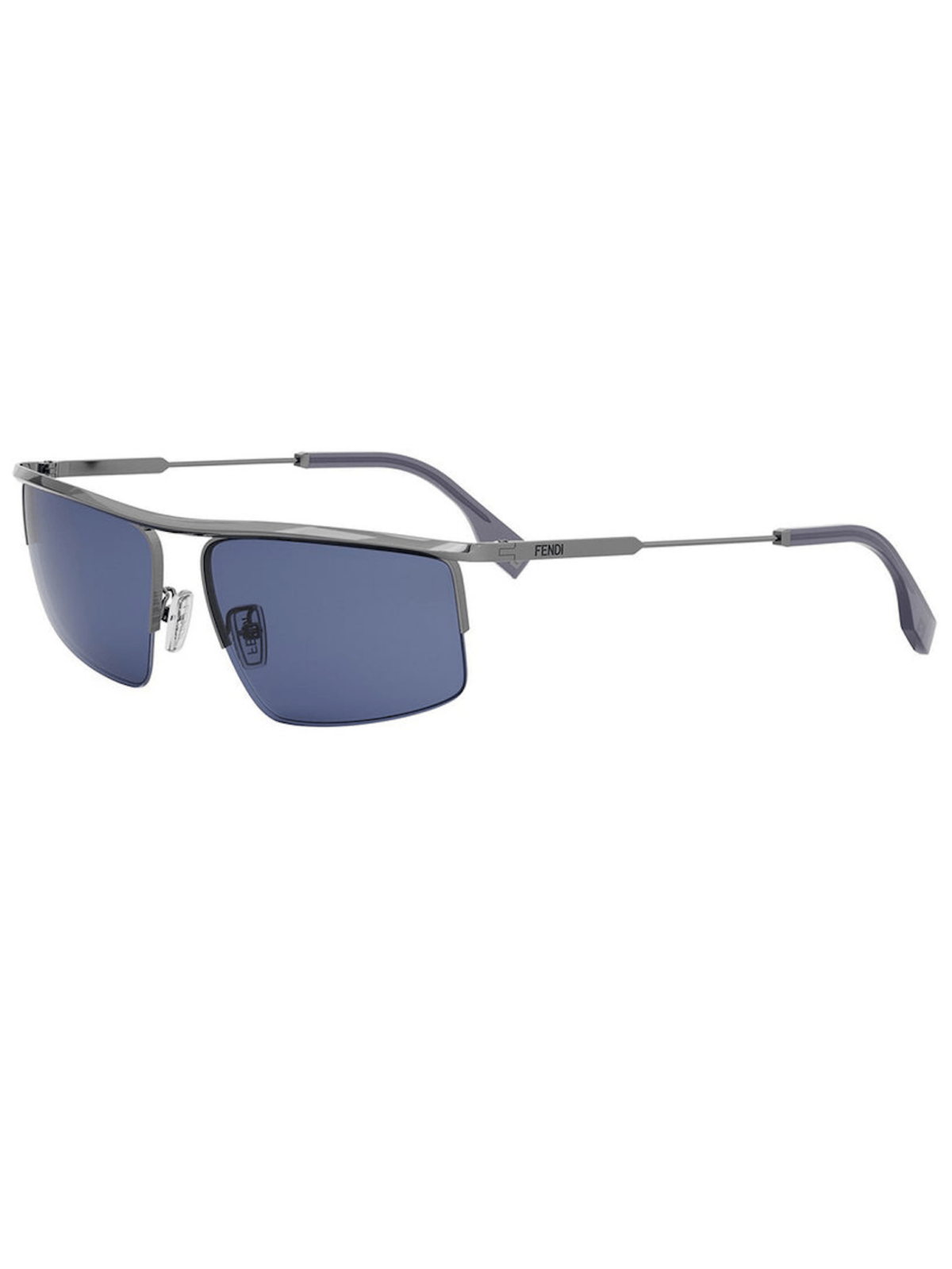FENDI FE 40141U 12V – солнцезащитные очки с современным силуэтом маски, имеют синие однотонные линзы и металлическую оправу.