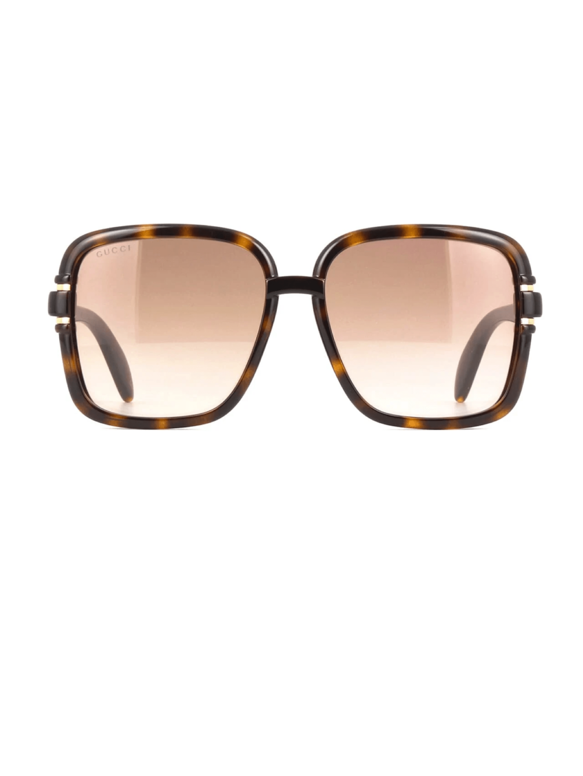 Объемная модель квадратной формы в роговой оправе с коричневой, градиентной линзой.
