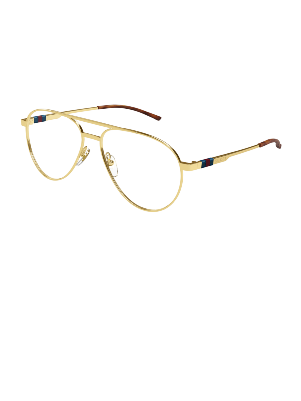 Модель имеет силуэт авиатора с металлической оправой в цвете золота. Материал оправы – металл. Линзы прозрачные (оптическая версия).
