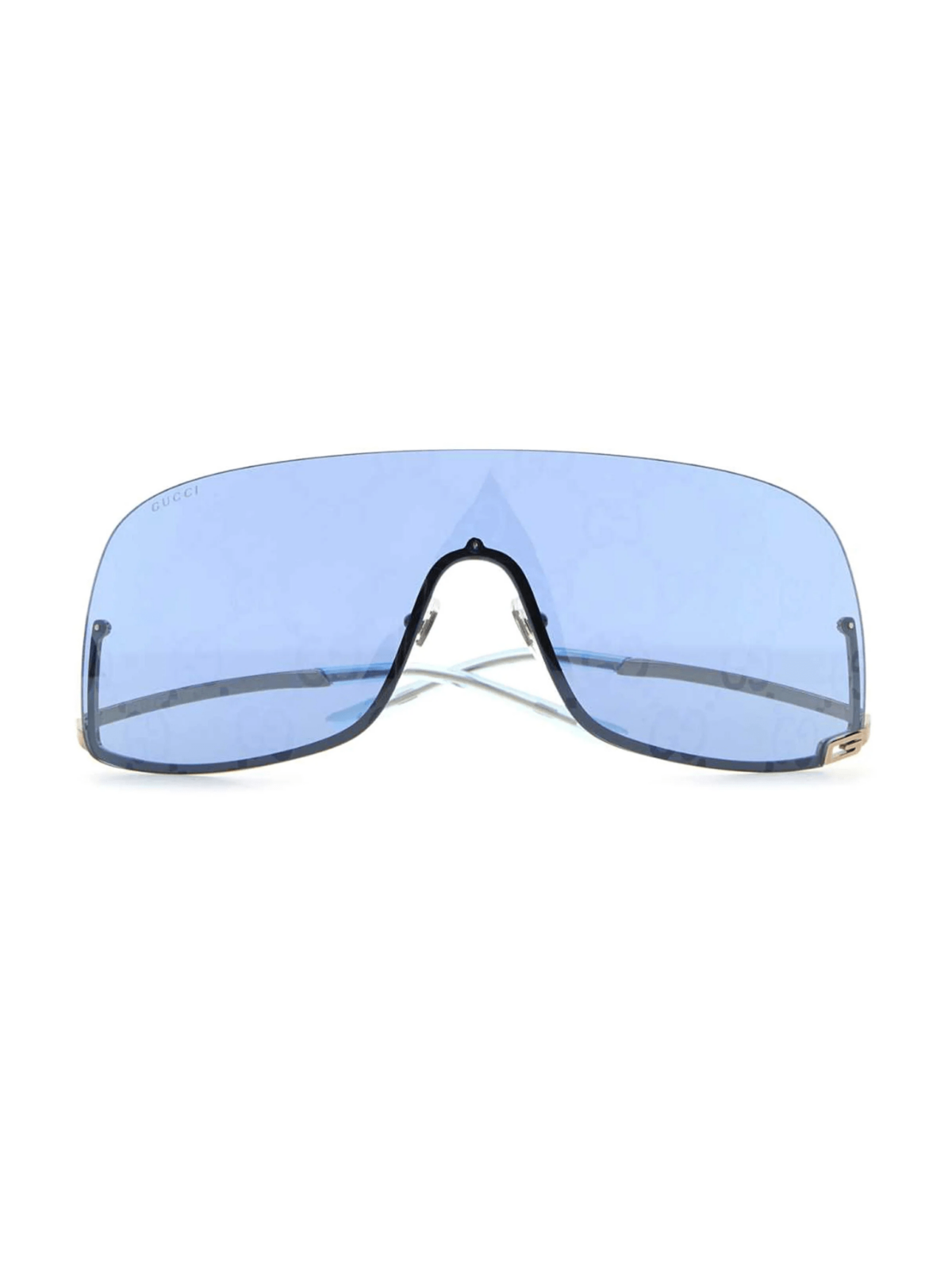 Модель в форме маски голубого цвета с галограммой на линзе.