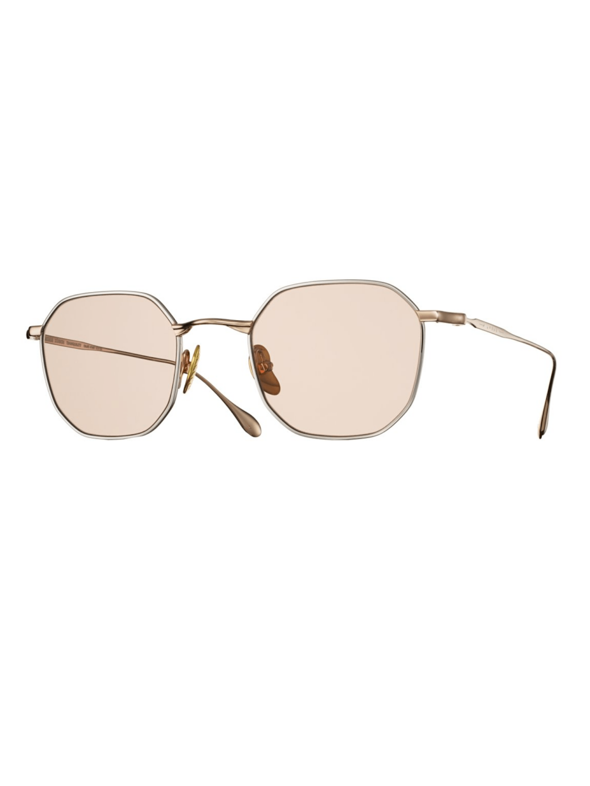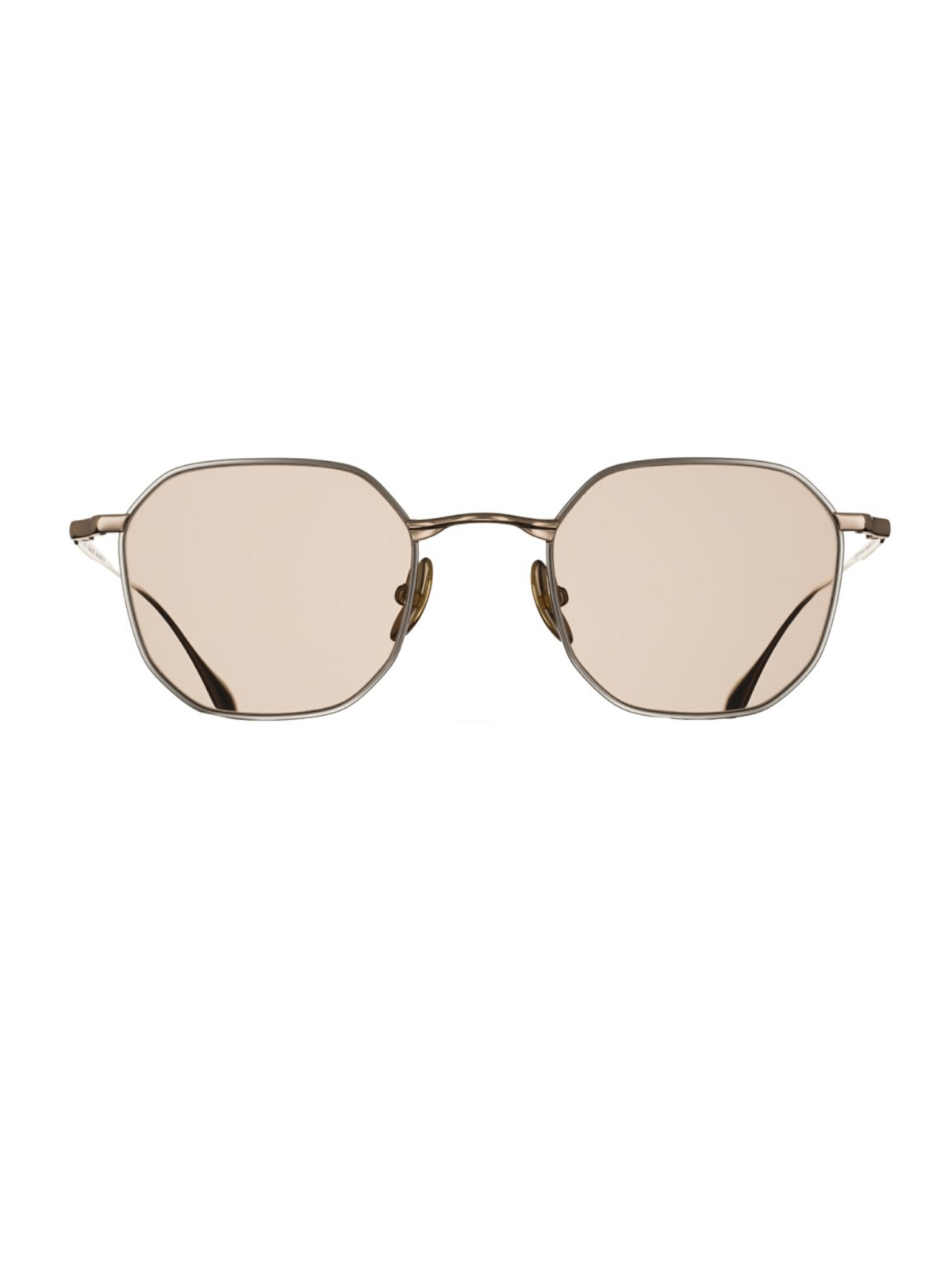 MASSADA TRANQUILITY 9772 P Palladium with Rose - модель шестиугольной формы с мягко закругленными углами, линзы светло-розового оттенка, полупрозрачные. Оправа матовая с золотистого цвета из бета-титана. TRANQUILITY – это искусство математики. Модель вдохновлена ​​пространственным балансом и олицетворяет изящную простоту. Индивидуально изготовленные асимметричные носоупоры созданы по форме боба Лимы, обращенного к картезианскому уравнению √2(x² + y²)² = ay(3x² + y²). Изделие создано в Японии как objet d'art – произведение искусства, сформированное с совершенством. Лимитированная серия с индивидуально пронумерованными экземплярами. Ручная работа в Японии. Скобки из бета-титана, вдохновленные искусством Барбары Гепворт и гравюрами Казимира Малевича. Индивидуальные титановые носоупоры формы Lima Bean Curve с логотипом MASSADA и уравнением √2(x²+y²)² = ay(3x²+y²). Специальная конструкция переносилась с фрактальным элементом. Покрытие золотом, включая 24-каратное.