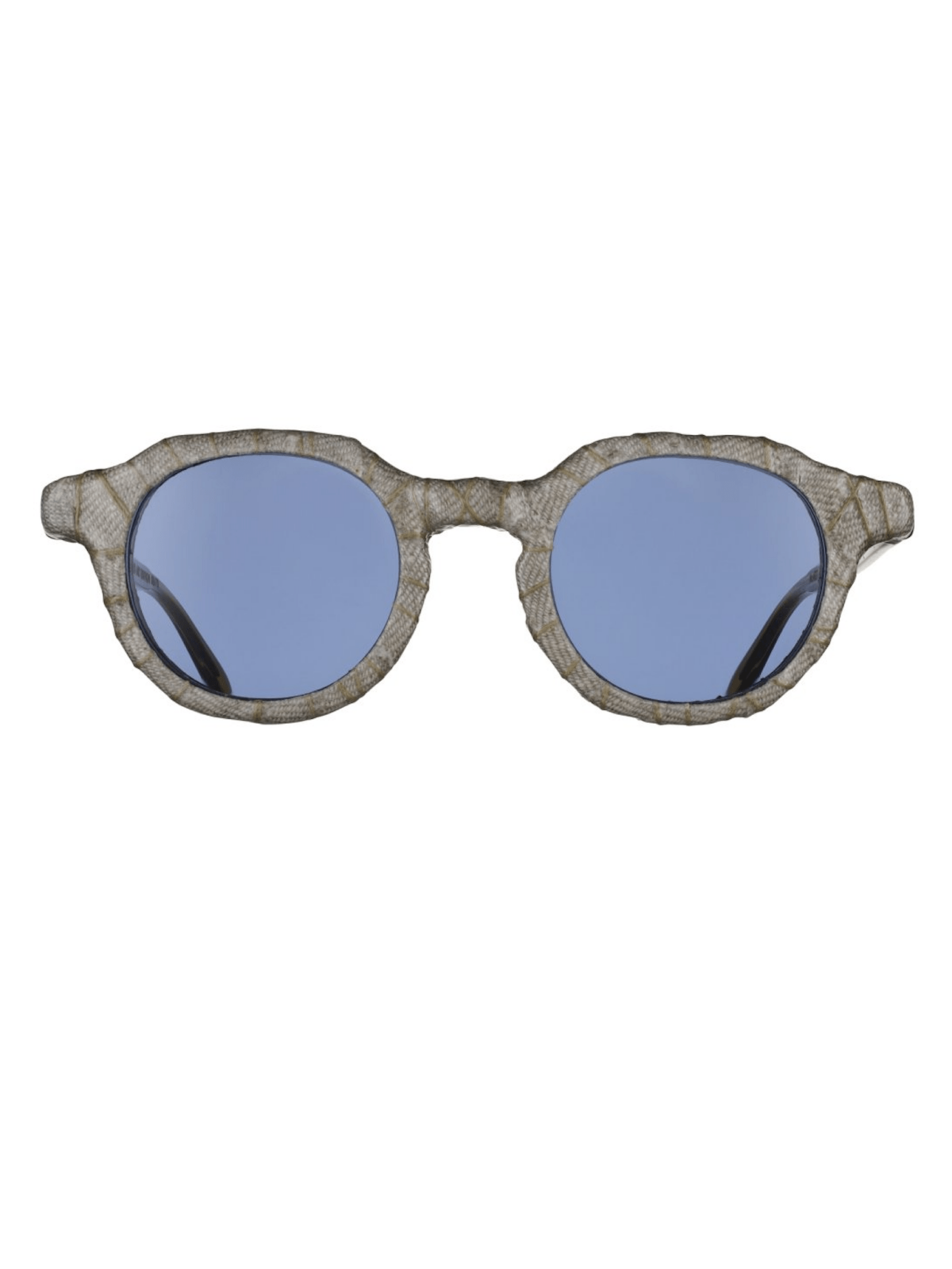 MASSADA WRAPPED ART1-N Natural — модель имеет классическую округлую форму. Оправа выполнена из премиального ацетата, линзы — однотонного голубого цвета. Мировая лимитированная серия — всего 70 пронумерованных экземпляров. WRAPPED — уникальный арт-объект, который никогда не повторяется. Эта авангардная оправа, вдохновлённая искусством Христо, пробуждает любопытство к скрытому внутри объекту и пространству вокруг него. Использованный текстиль отсылает к священному японскому искусству Цуцума, где обёртывание символизирует защиту и удачу. Объект «дышит» — это символическое путешествие, в котором форма растворяется, а сущность остаётся скрытой. WRAPPED изготовлена вручную в Италии из 8-миллиметрового премиального итальянского ацетата, оснащена эксклюзивными пятишарнирными петлями, фирменными заклёпками MASSADA в форме октагона и золотым логотипом. Линзы Zeiss 4 Base с логотипом и внутренним антибликовым покрытием обеспечивают 100% защиту от UVA/UVB. Заушники разработаны под влиянием искусства Казимира Малевича и Барбары Хепуорт.