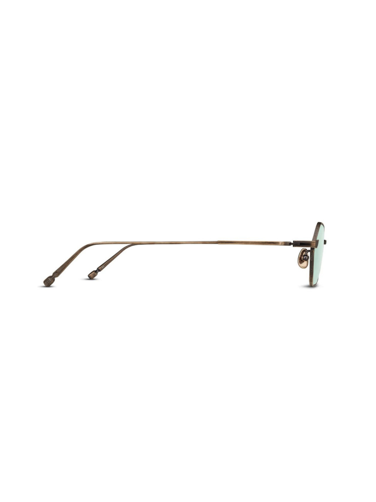 MATSUDA M3138 Gold/Green – современная геометрическая модель полностью изготовлена ​​из ультралегкого титана с премиальным металлическим покрытием. Аккуратная геометрия силуэта сочетается с полуплоскими линзами, которые придают дизайну четкости и современный характер. Скобки украшены фирменным лаком с «витражным» эффектом — эстетическая деталь, подчеркивающая индивидуальность модели и отсылающая к культурному наследию бренда. Линзы представлены в тонированных Café-оттенках, создавая теплое, утонченное настроение и плавные цветовые переходы. Благодаря легкой титановой конструкции модель обеспечивает комфорт, а японское мастерство гарантирует безупречную точность и качество исполнения.