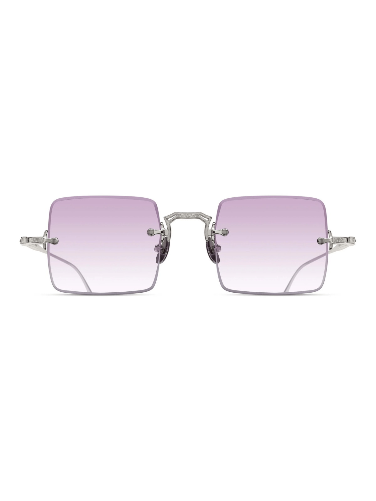 MATSUDA M5001.SG White/Violet - Коллекция Matsuda Rimless переосмысливает классическую безоправную конструкцию в современной интерпретации. Модель M5001 отличается четким квадратным силуэтом, дополненным изящно гравированной перемычкой и гибкими бета-титановыми скобками. Покрытие из 22,5-каратного золота и других благородных металлов подчеркивает сложность и деликатность исполнения, создавая характерный премиальный блеск. Легкое титановое основание и безоправный дизайн обеспечивают комфортную посадку и минималистичный, изысканный вид, а солнцезащитные линзы премиального уровня гарантируют качество и чистоту оптического восприятия.